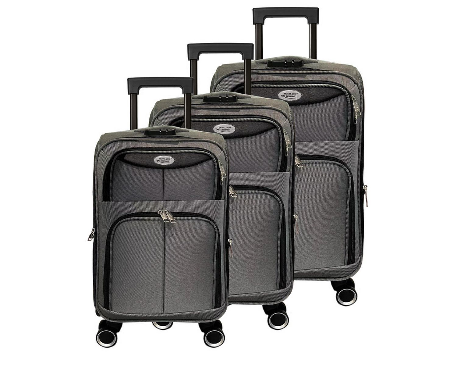 - 3-teiliges Kofferset aus dem Hause Gustav Voss - Serie: Mykonos - hochwertig verarbeitet in robustem Design - Softshell-Körper aus hochverdichtetem, wasserabweisendem Polyester - 360° Leichtlauf-Doppelrollen - verstellbarer Teleskopgriff - 2 zusät