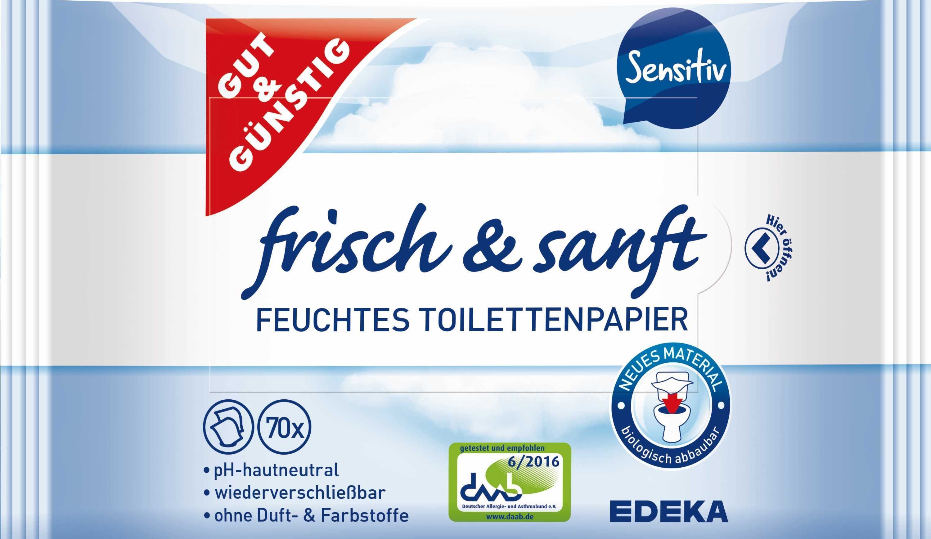 Gut & Günstig 4192668000 Feuchtes Toilettenpapier sensitiv - 2x 70 Stück