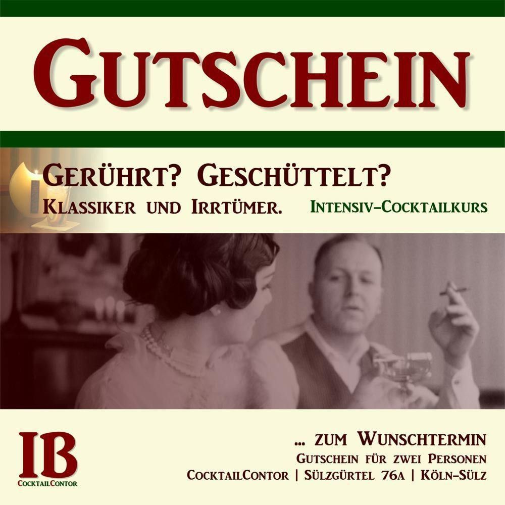 Gutschein für 2 Personen: Gerührt? Geschüttelt? Klassiker und Irrtümer. Intensiv-Cocktailkurs in Köln. Gerührt oder geschüttelt? Es sind nicht zuletzt die Mythen, die sich um einige Cocktails ranken, die diese besonders interessant machen. Hinzu gesellen sich Irrtümer, die mittlerweile für wahr gehalten werden. Solche Geschichten rund um das Thema Cocktails möchten wir dir in diesem Cocktailkurs näher bringen.