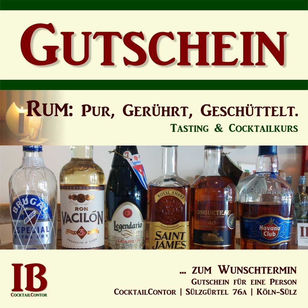 Gutschein: Rum: Pur, gerührt, geschüttelt. Rum-Tasting & Cocktailkurs in Köln. Um dich mit der vielfältigen Welt des Rum vertraut zu machen, kombinieren wir ein Rum-Tasting mit einem Rum-Cocktailkurs.
