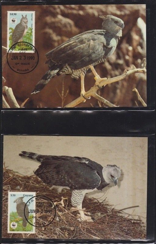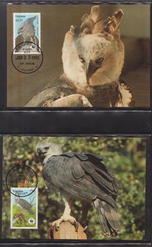 Guyana 1990 Maximumkarten MiNr. 3077-3080 WWF Harpyie