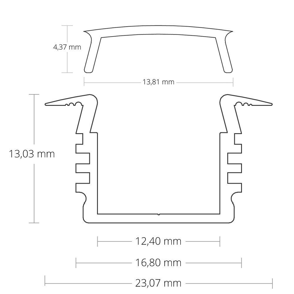 GX-PL3 LED EINBAU-Profil 200 cm, hoch/Flügel, LED Stripes max. 12 mm, weiß RAL 9010