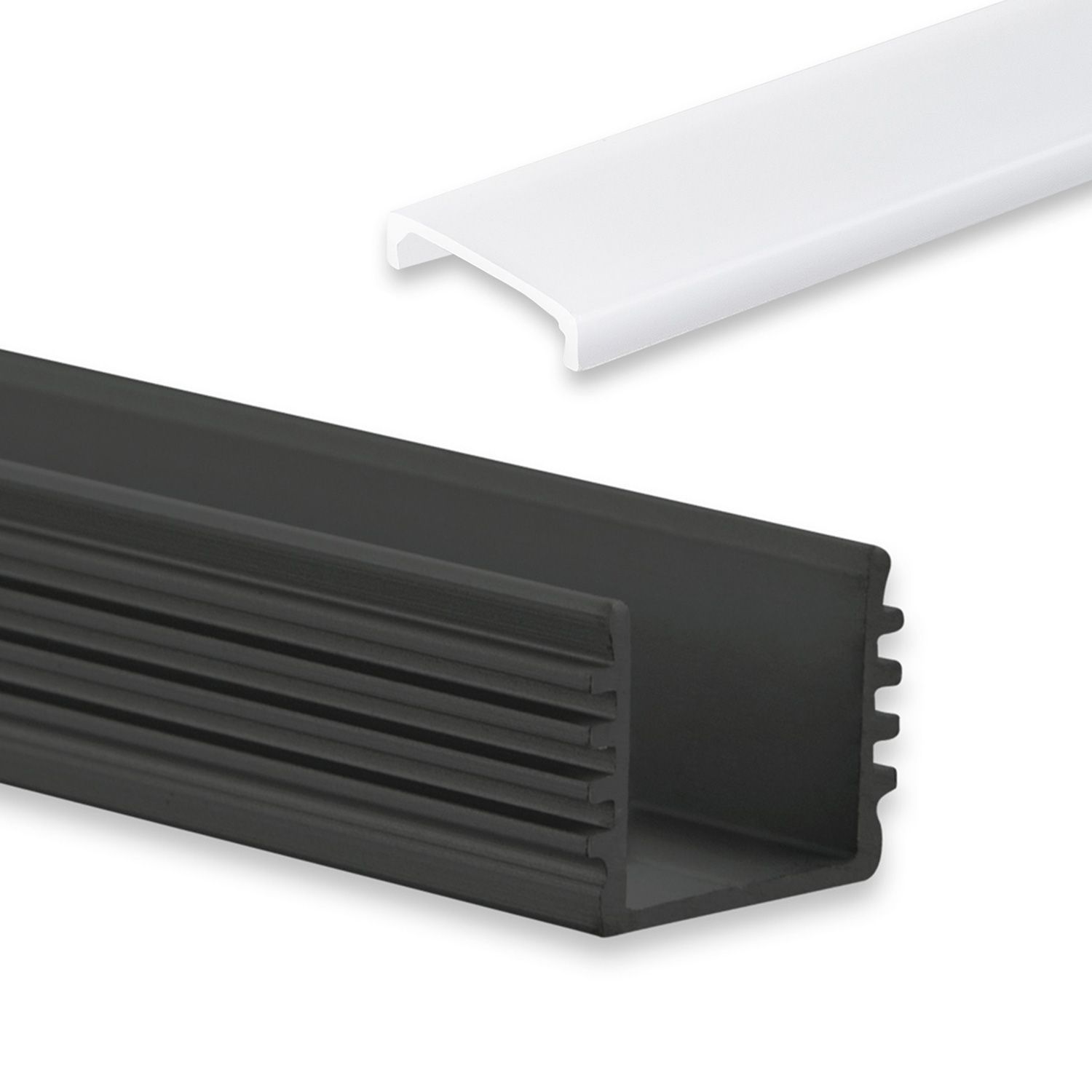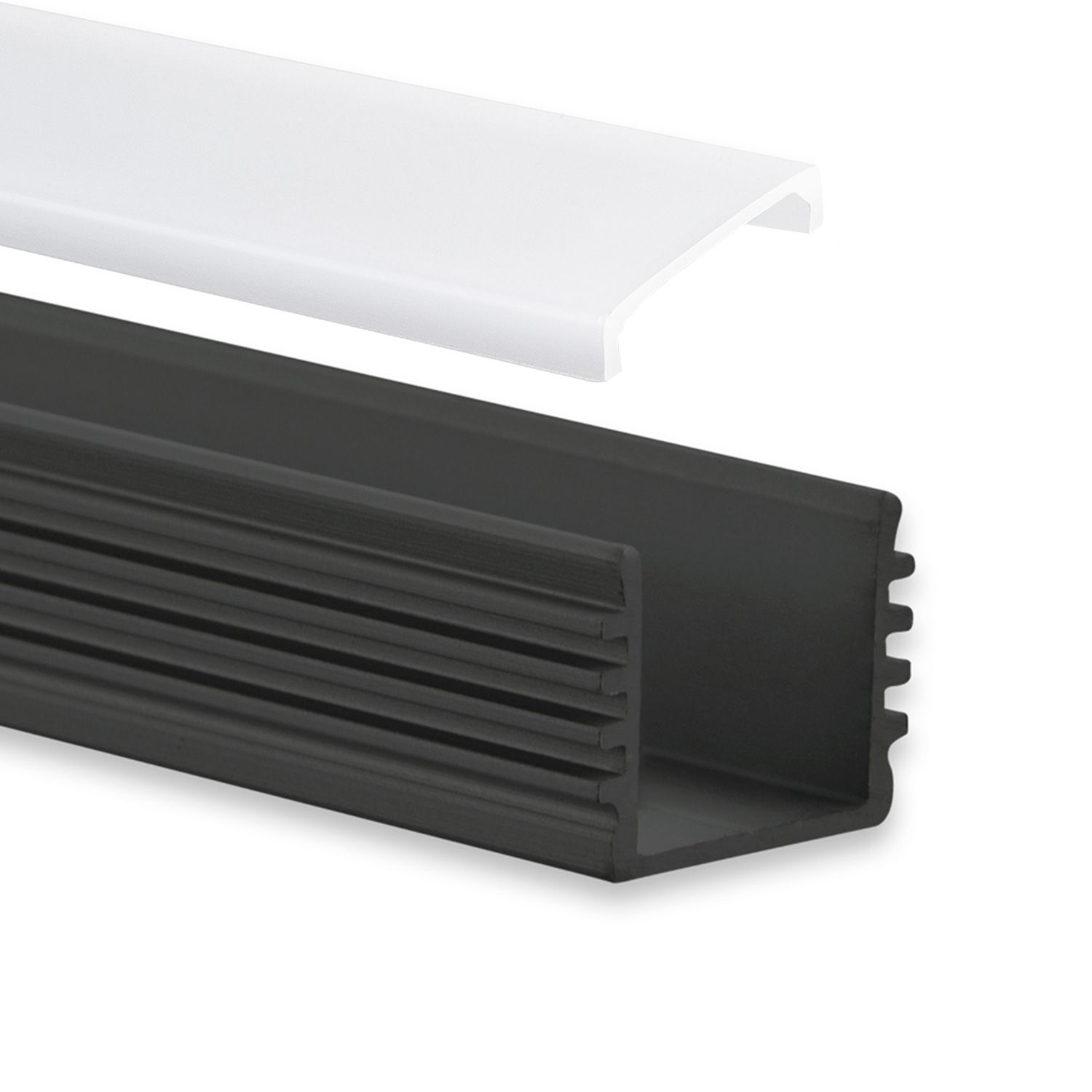 GX-PL5 LED AUFBAU-Profil 200 cm, hoch, LED Stripes max. 12 mm, schwarz RAL 9005