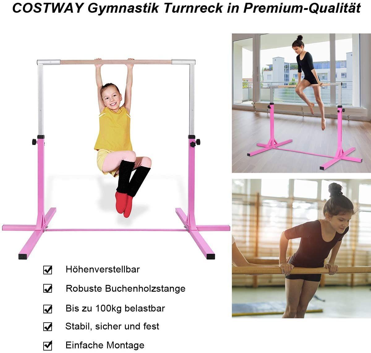 Gymnastik Turnreck höhenverstellbar, Turnstangen bis 100kg belastbar, Reckstange