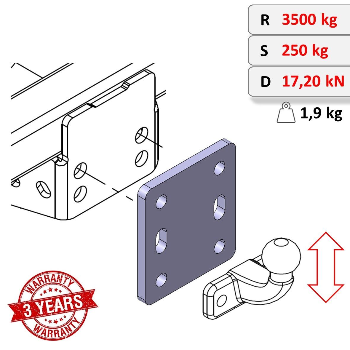 Höhenverstellbare Adapterplatte Anhängerbock 3x90mm Ford Ranger II 2006-2012