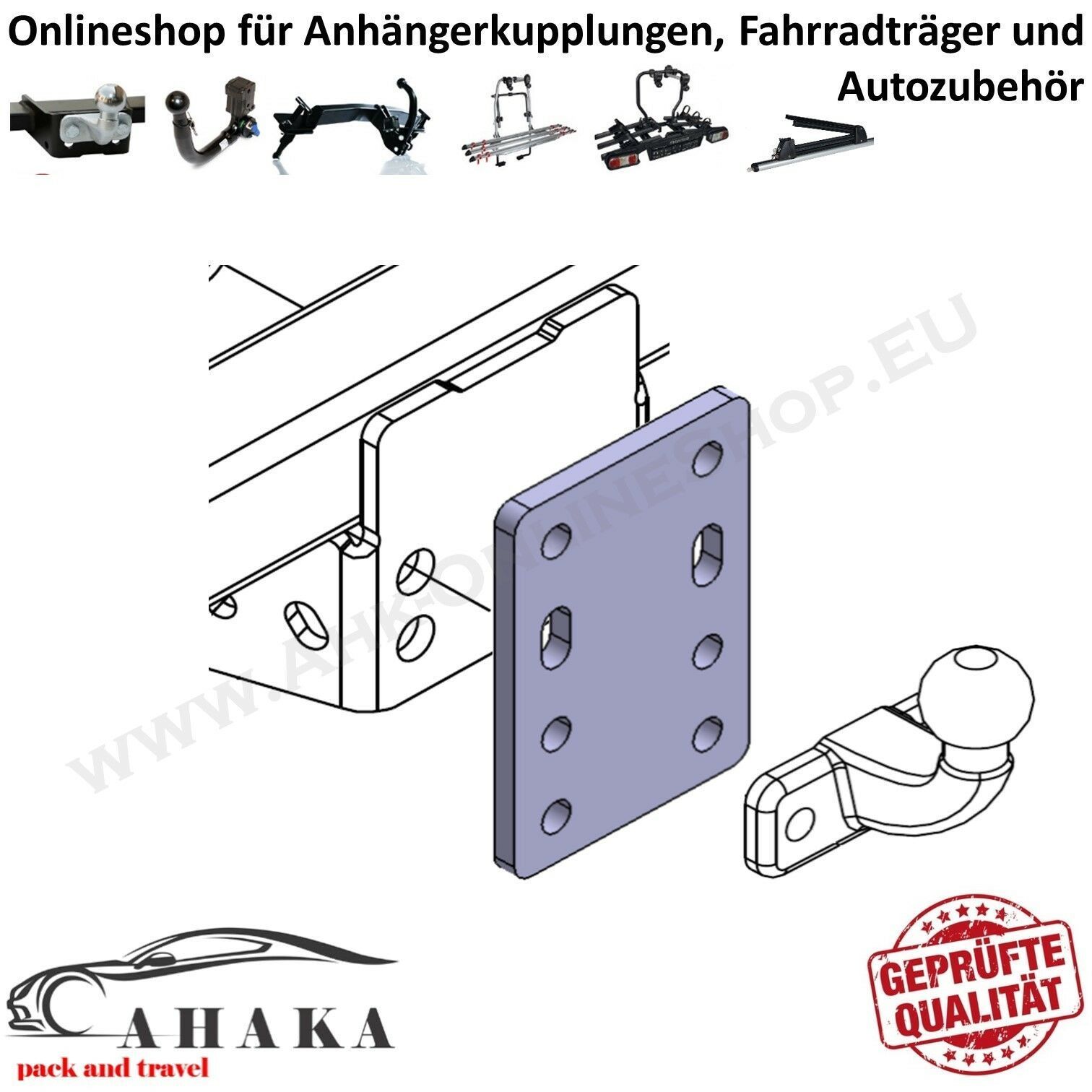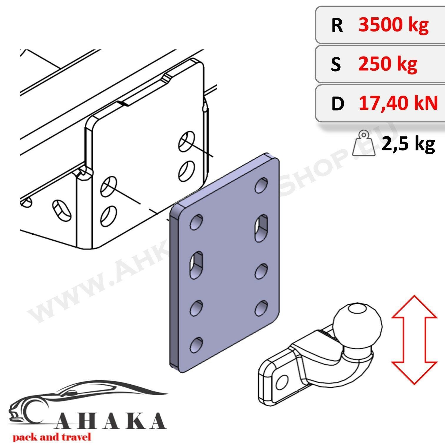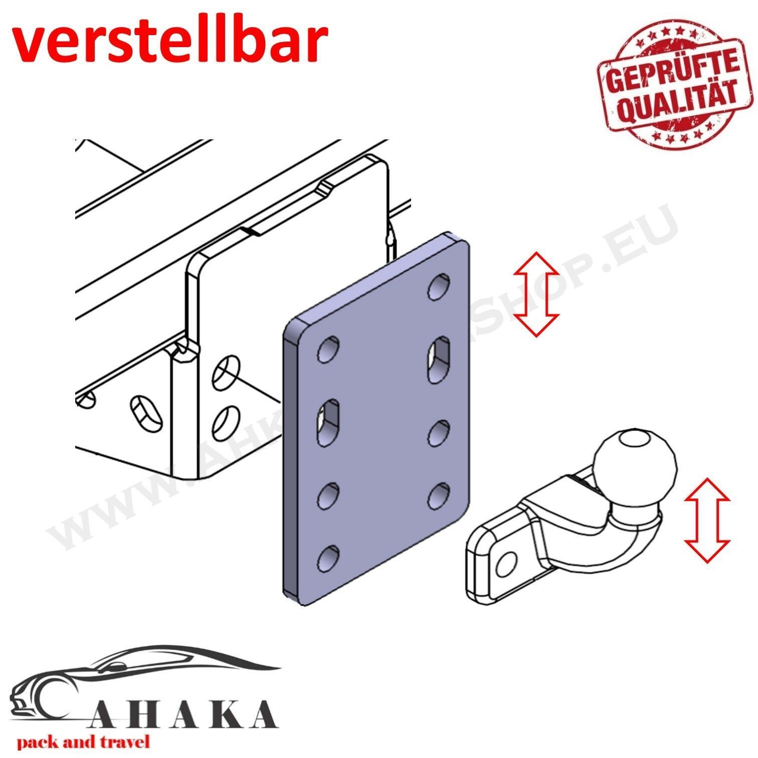 Höhenverstellbare Adapterplatte Anhängerbock 4x90 mm für AHK Flanschkugel 12 mm