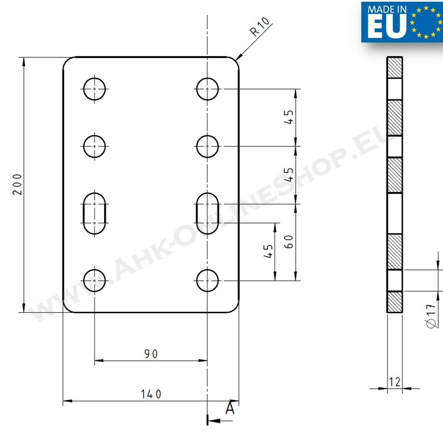 Höhenverstellbare Adapterplatte Anhängerbock 4x90mm VW Multivan I 2003-2009