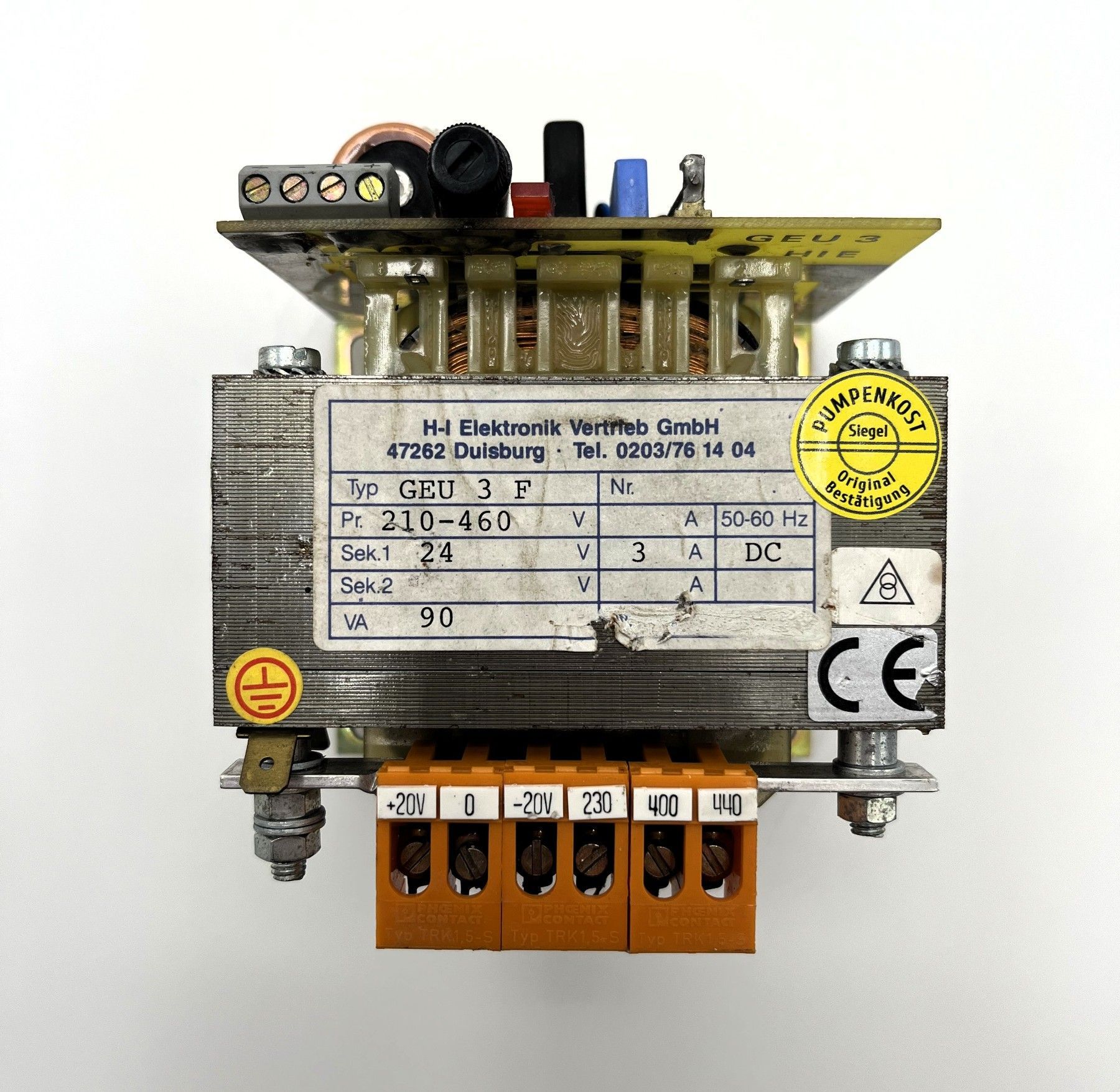 H-I Elektronik Typ GEU 3 F Trafo pri 230 400 440V sek 24V DC 3A 90VA T10/169