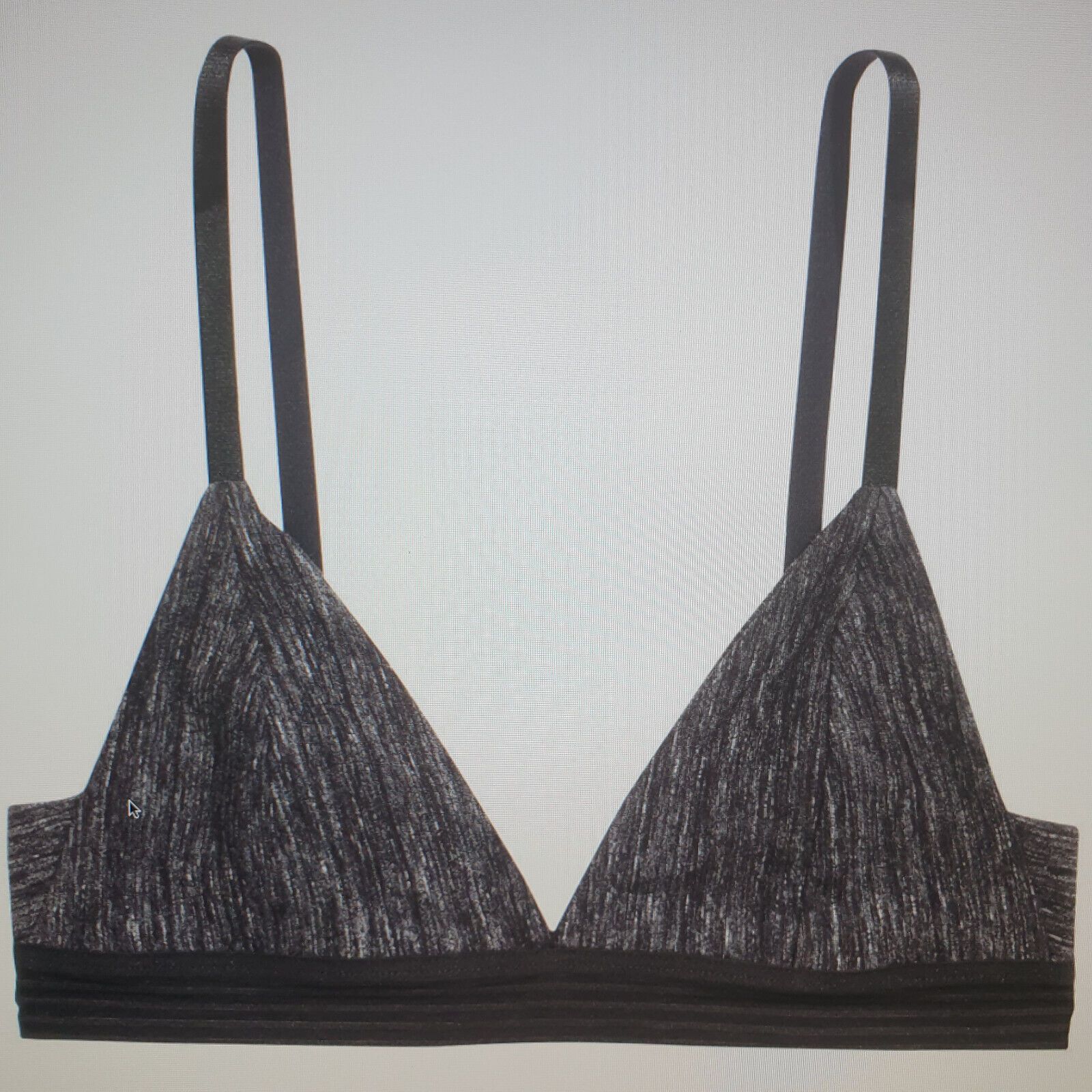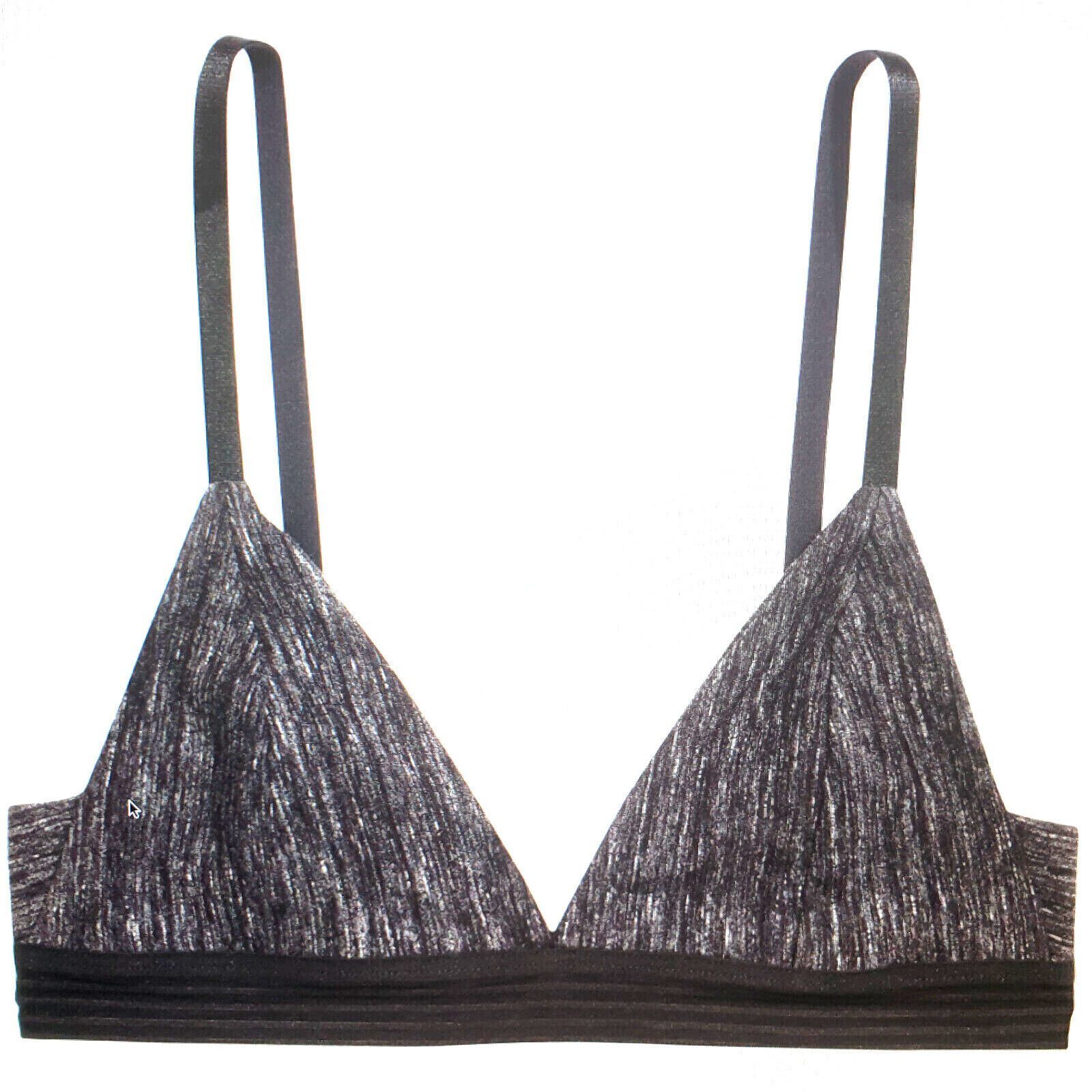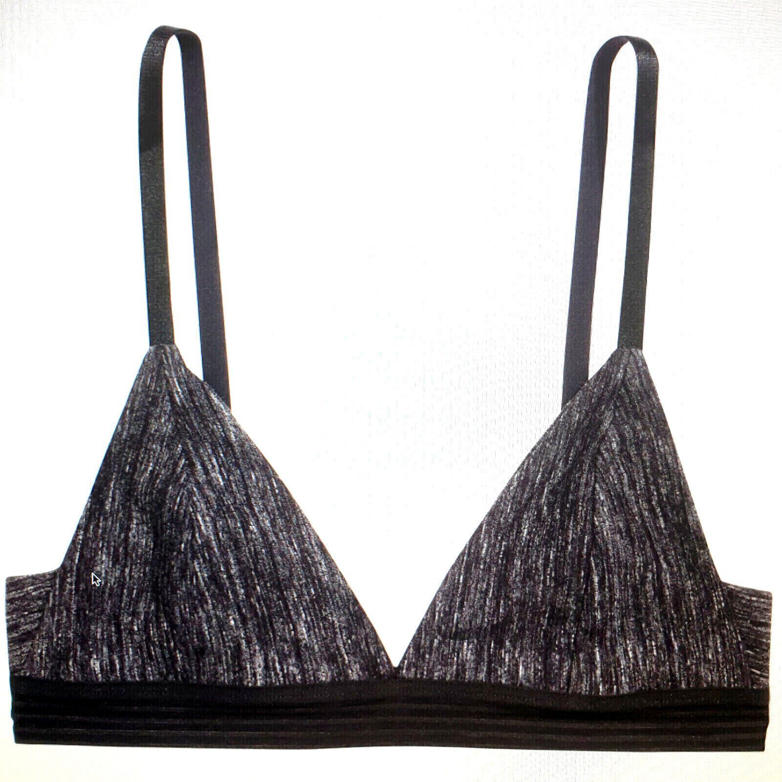 H&M bügelloser BH Gr.34, 36 Weicher, bügelloser BH aus Baumwolljersey. - gefütterten Triangel-Cups, - leichte Halt und eine natürliche Form . -Unterbrustgummi. -Schmale verstellbare Träger - Häkchenverschluss im Rücken. Farbe: schwarz meliert Material : 95%Baumwolle,5 %Elasthan Elastische Teile