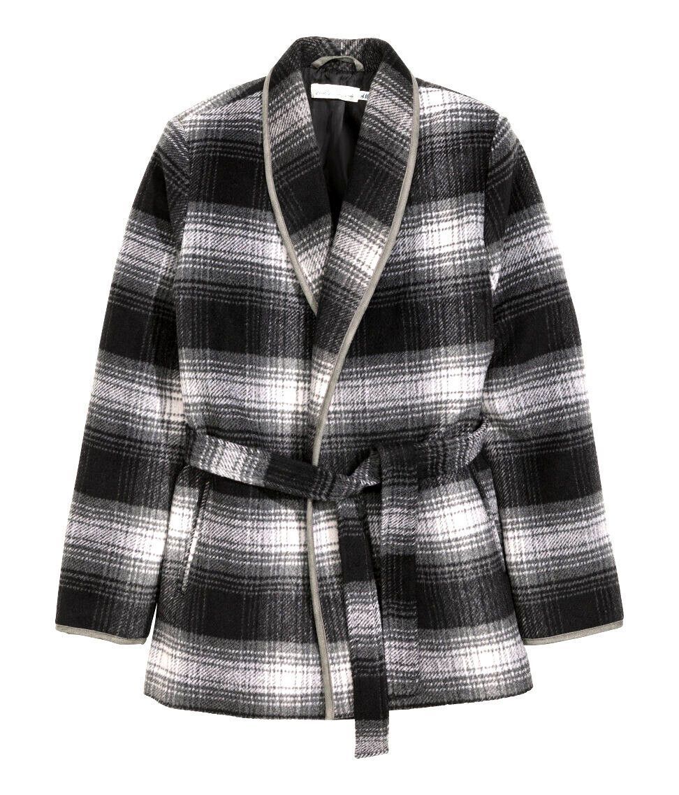 H&M Damen Mantel aus Wollmischung Gr. S, M, L schwarz grau kariert 59,99 € NEU
