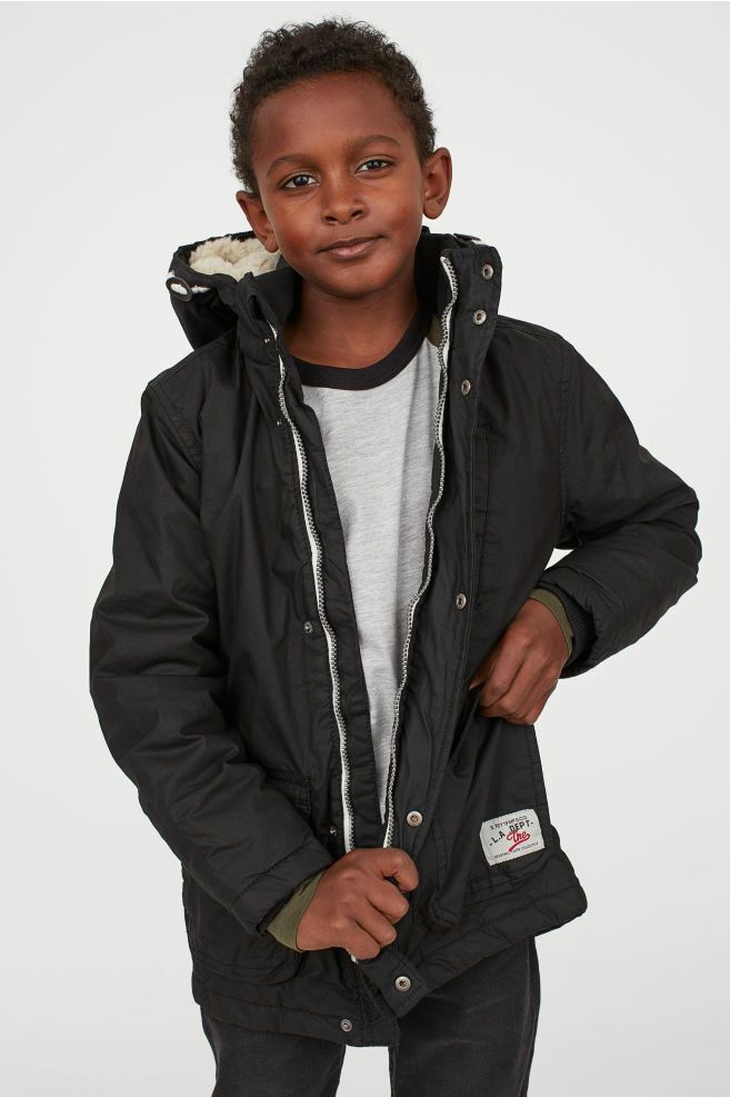 H&M Jungen Winterjacke Wattierter Parka Gr. 134,140,146,152 schwarz NEU