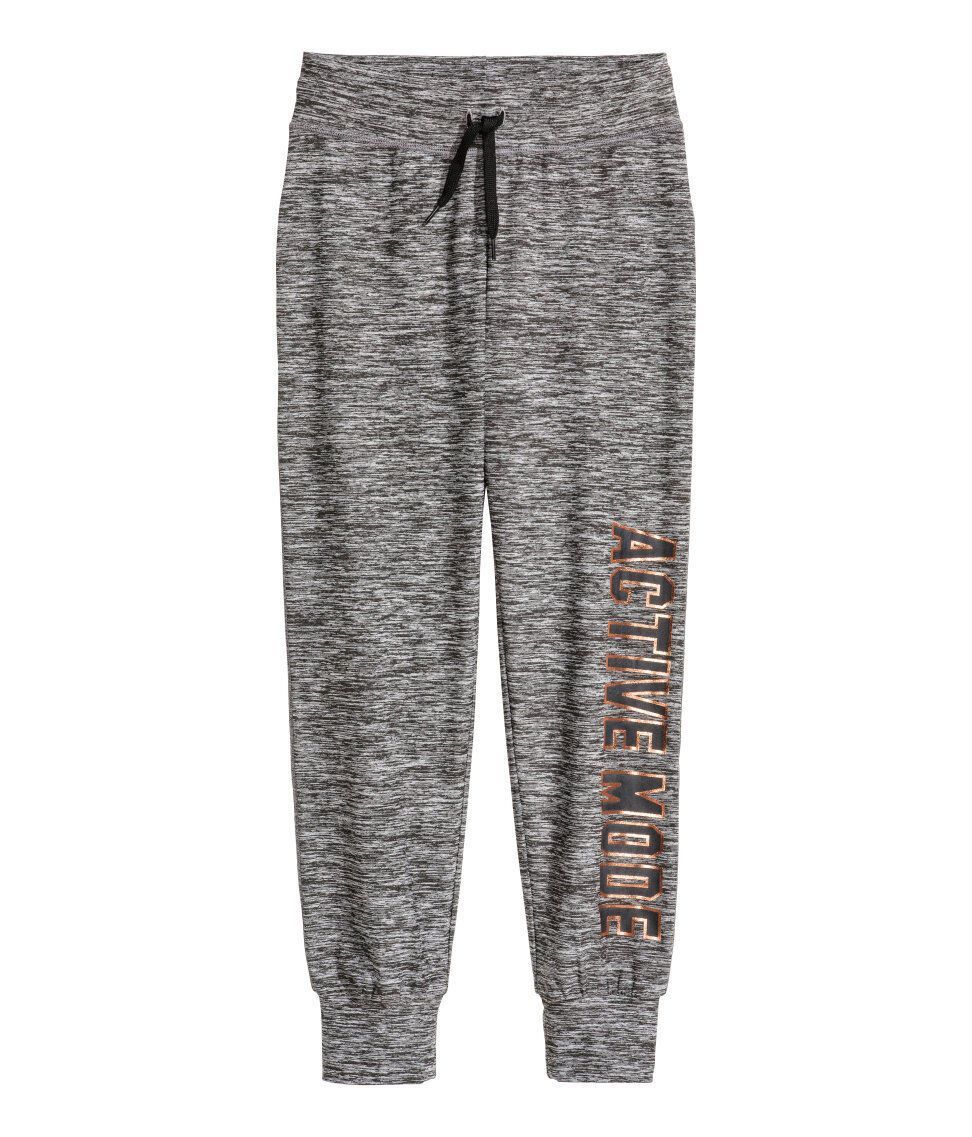 H&M Sporthose Melierte Sporthose aus schnelltrocknendem Funktionsmaterial. Modell mit elastischem Kordelzugbund, und Druck auf dem einen Bein und Bündchen unten. Lockere Passform. Gr. 134 140, 146 152, 158 164, 170 Farbe: dunkelgrau meliert Material: 92%Polyester,8%Elasthan Textilpflege: 40°