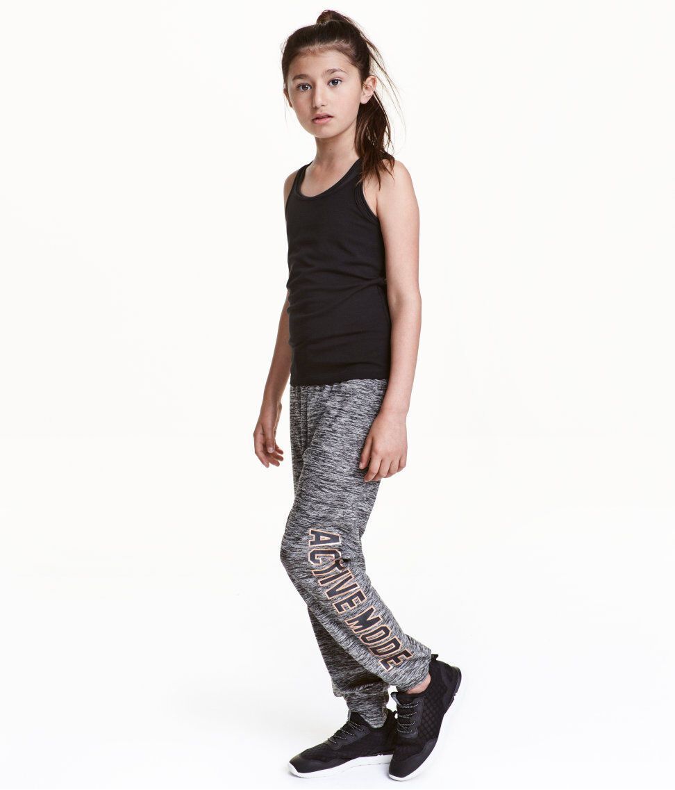 H&M Sporthose mit Druck Gr.134/140,146/152,158/164,170 dunkelgrau meliert NEU