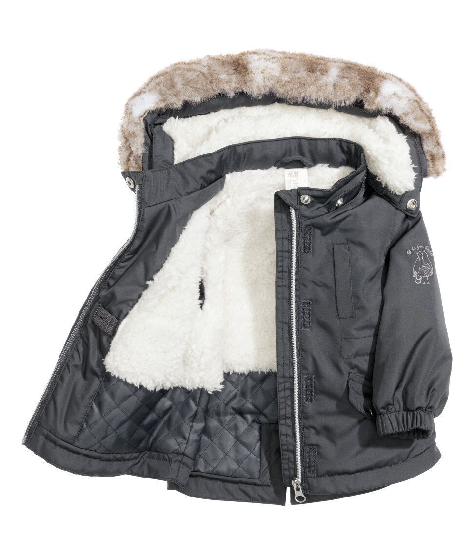 H&M Winterjacke Parka mit Teddyfutter Jacke Gr. 80, 86, 92 dunkelgrau NEU