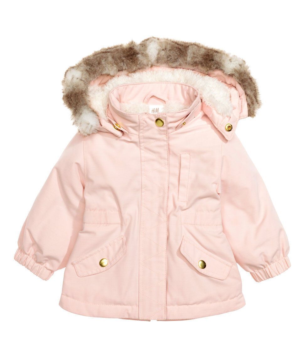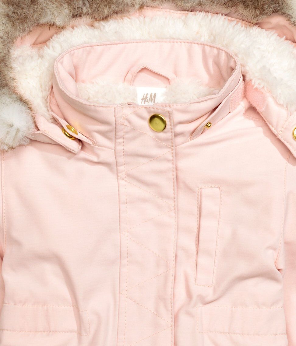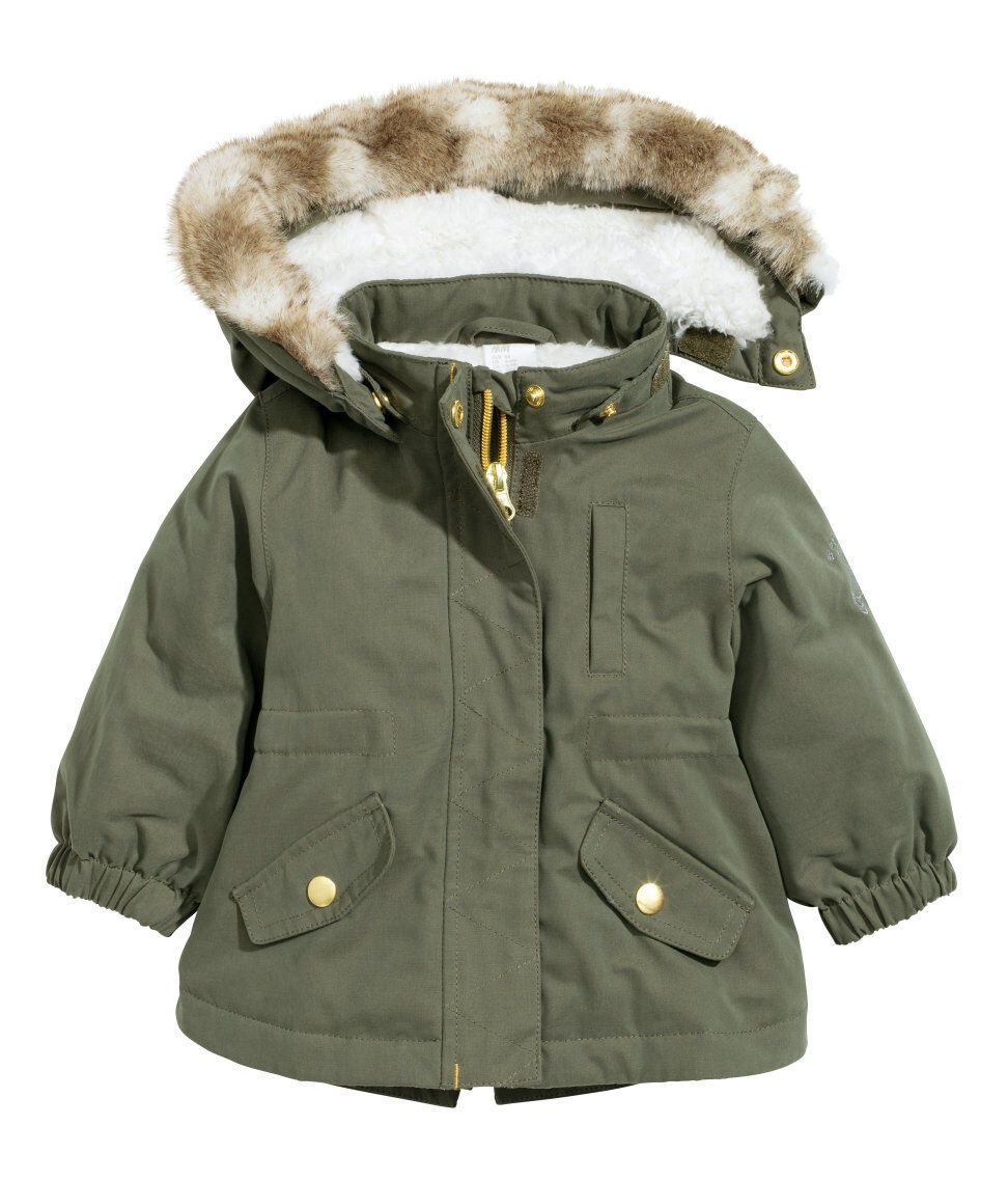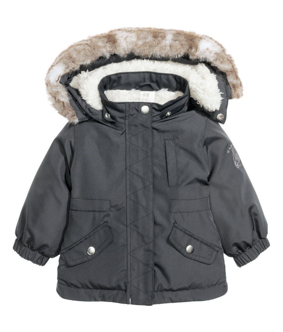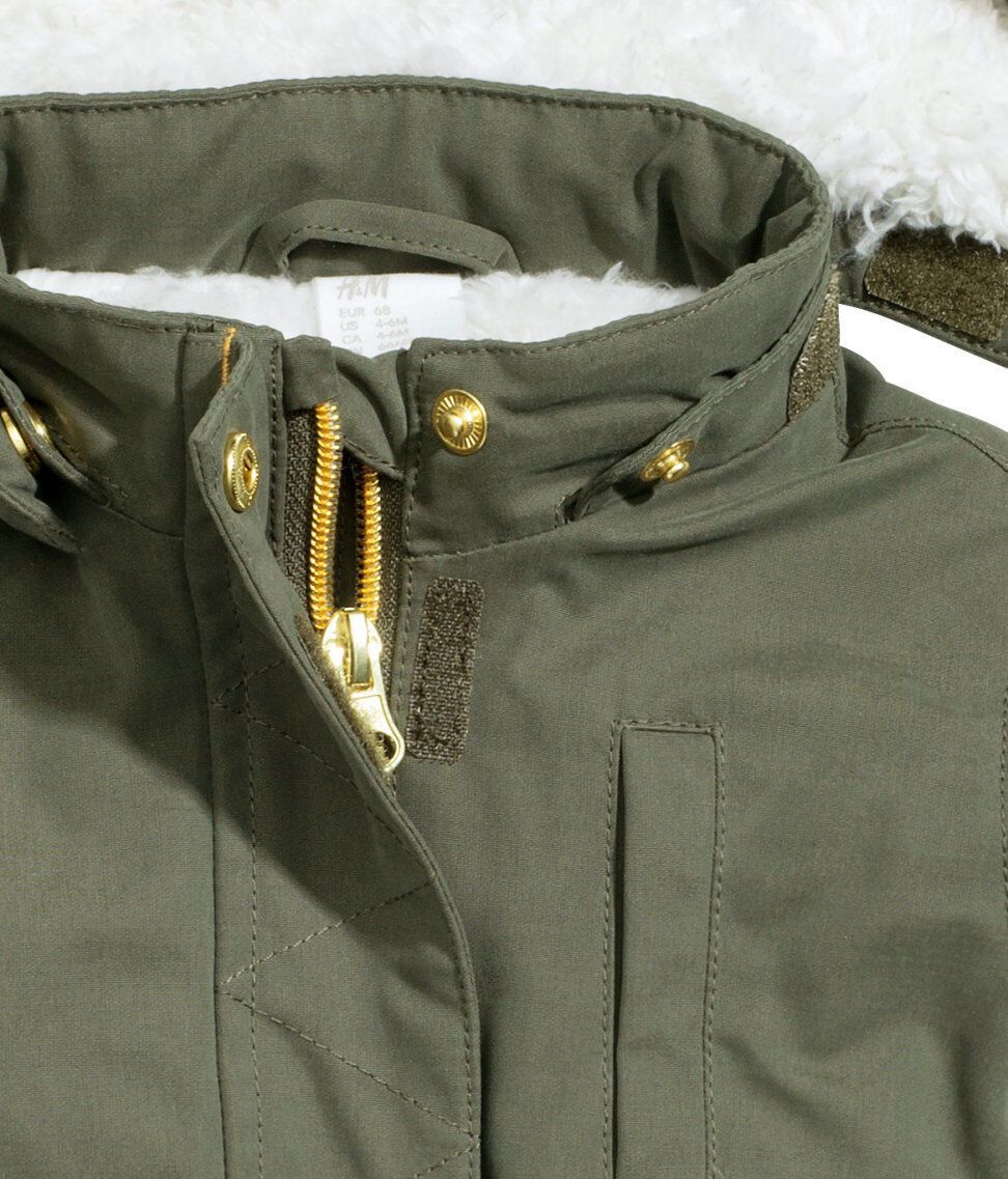 H&M Parka mit Teddyfutter Winterjacke Gr.80, 86, 92 Leichtwattierter Parka mit abnehmbarer Kapuze mit Teddyfutter und abknöpfbarem Fellimitatbesatz. Der Parka hat Vordertaschen, innen einen verstellbaren Gummizug in der Taille und elastische Ärmelabschlüsse. Frontreißverschluss mit Klett und im