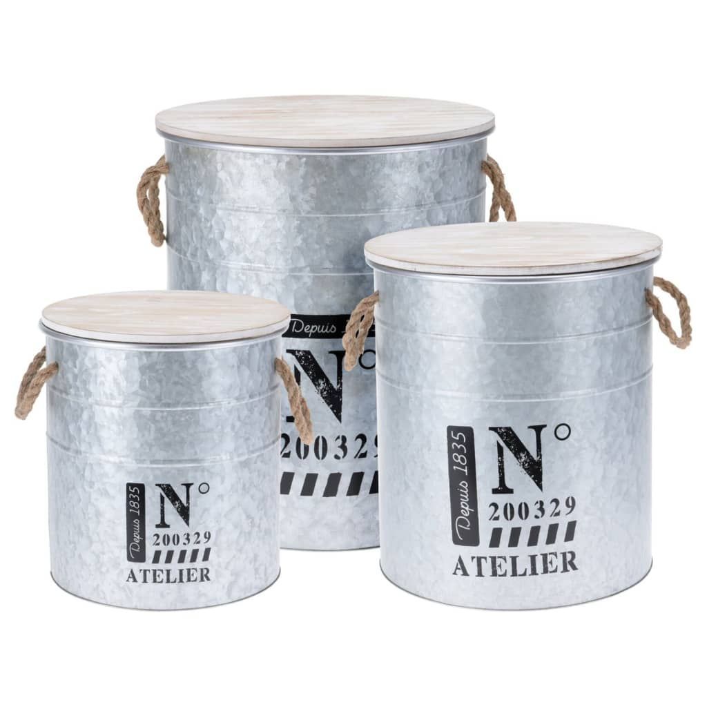 H&S Collection 3-tlg. Vorratsbehälter-Set mit Seil Zink