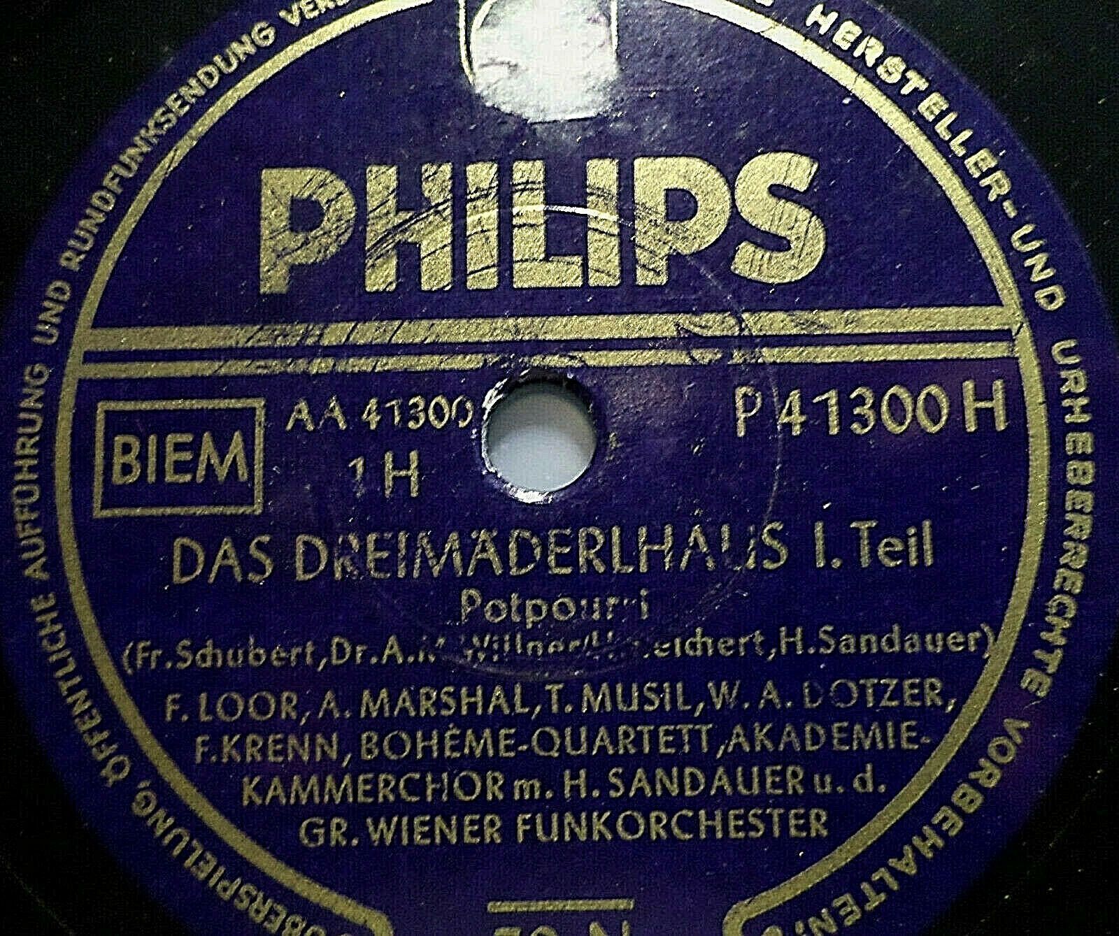 H. Sandauer & Various Arstists "Das Dreimäderlhaus - Potpourri" Philips 78rpm 10"