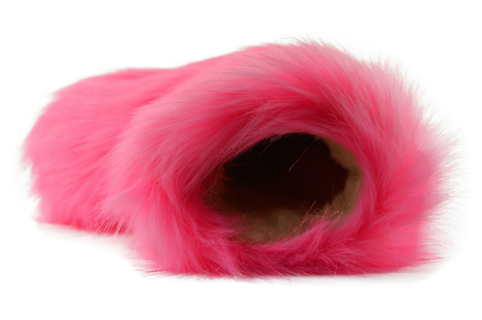 Hüttenschuhe Hausschuhe Yeti Fell Lammfell Schafwolle Pantoffeln Pink Gr.35-42