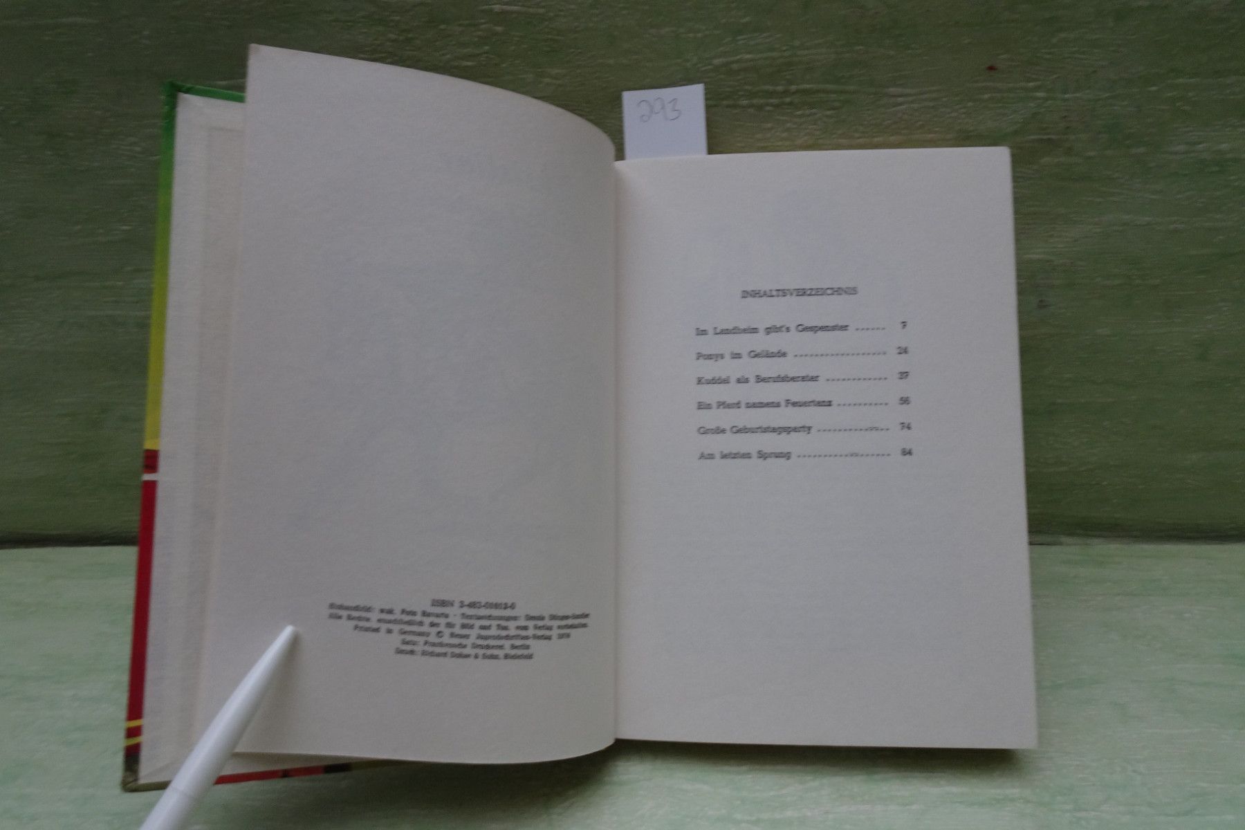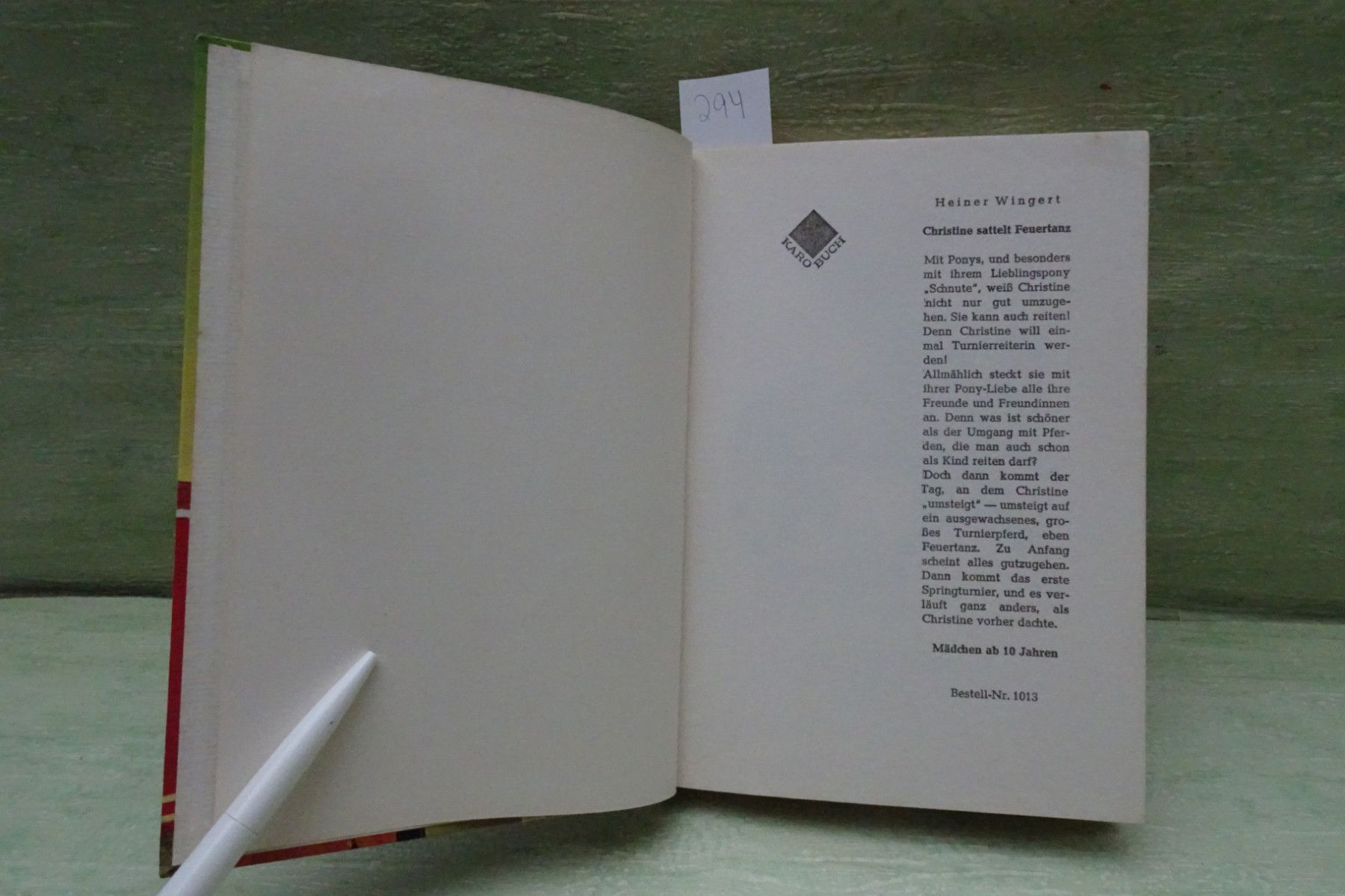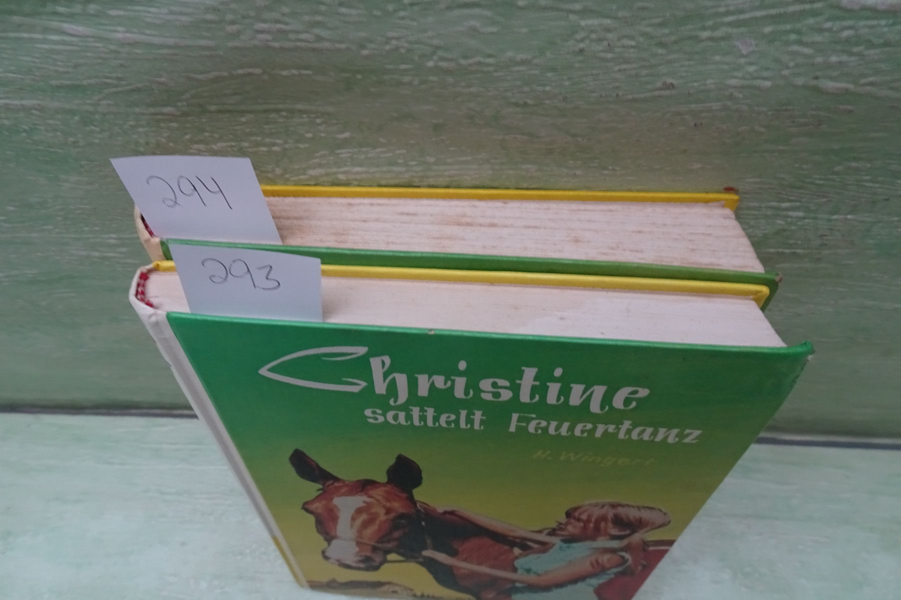 Jugend- & Kinderbücher ... Erinnerungen ..... Heiner Wingert Christine sattelt Feuertanz Textzeichnungen Ursula Dönges-Sandler -Auswahl- Abkürzungen: Buchschnitt : BS fleckig Buchecken : BE bestoßen Buchrücken : BR defekt Seiten : S Fadenbindung : FB Farbkopfschnitt : FK Frakturschrift : FS Hard
