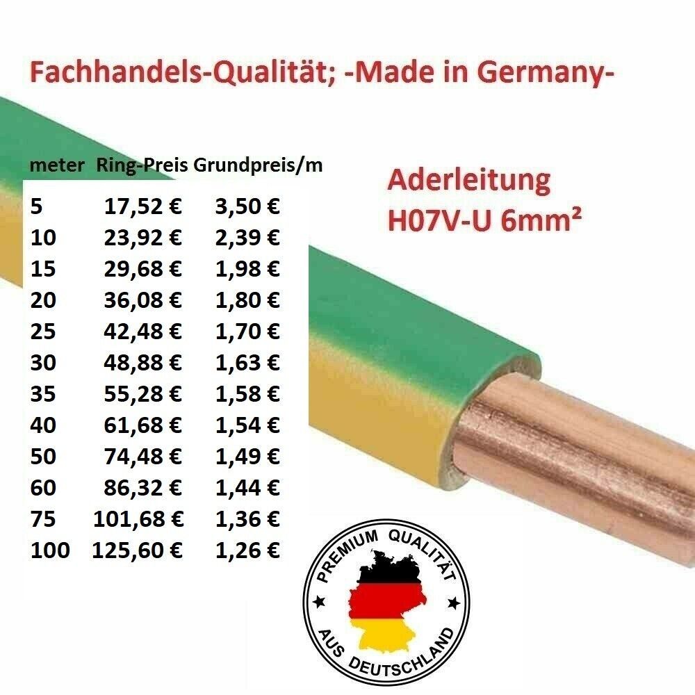 H07V-U 6 mmq Aderleitung Erdungskabel starr grün / gelb - Fachhandelsqualität