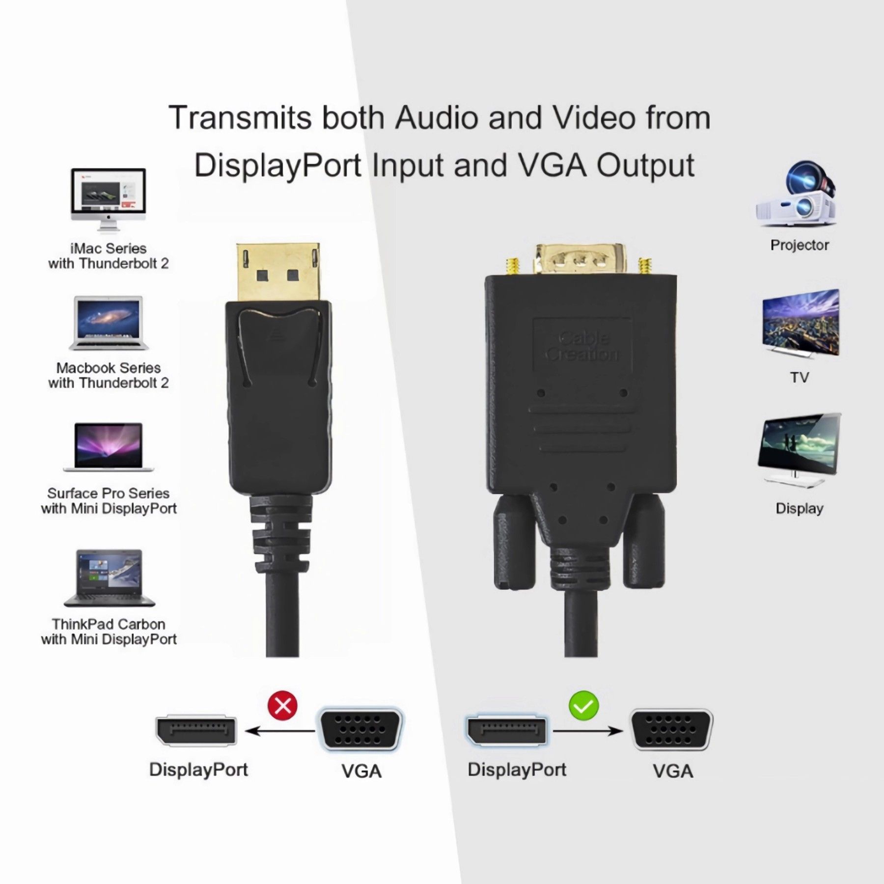 H17 DisplayPort auf VGA Kabel 1,8m Vergoldet 1080P DisplayPort DP Stecker zu VGA