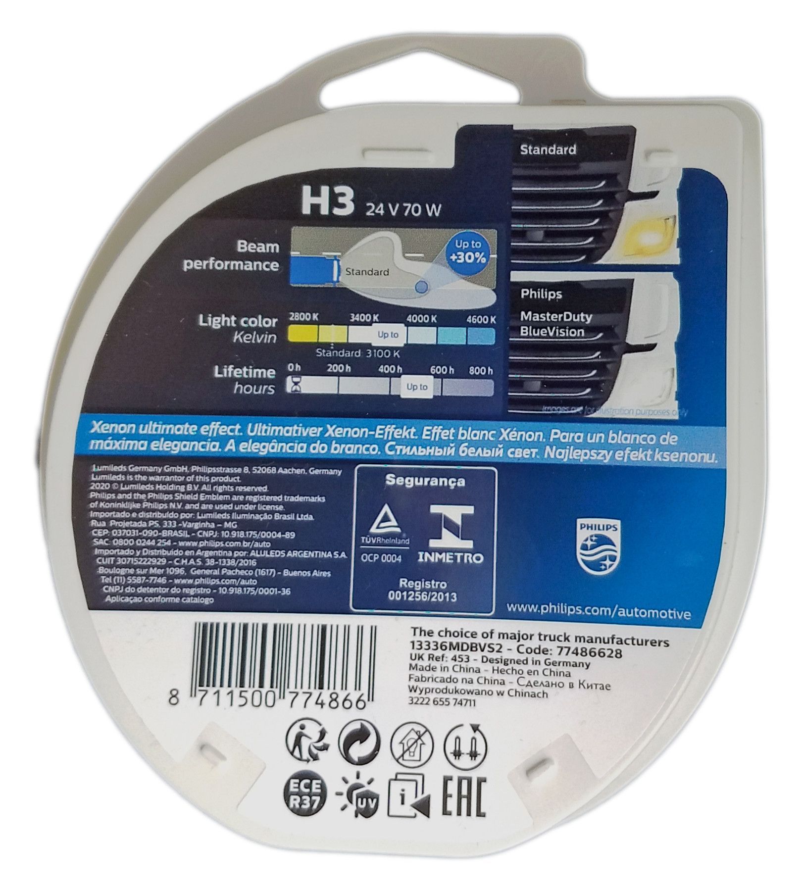Philips H3 Philips MasterDuty BlueVision 24V 70W PK22S 2st. 13336MDBVS2