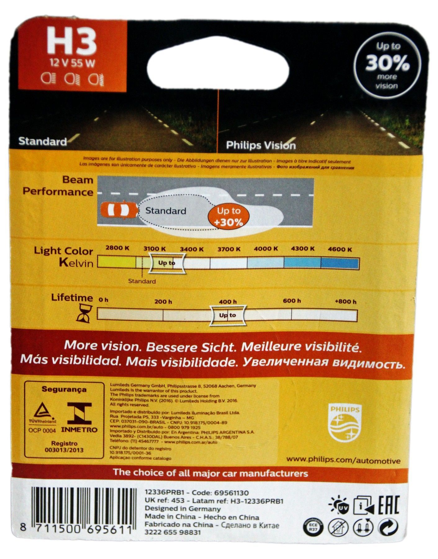 Philips H3 Philips Vision PK22s + 30% mehr Licht 1 Stück Blister 12336PRB1