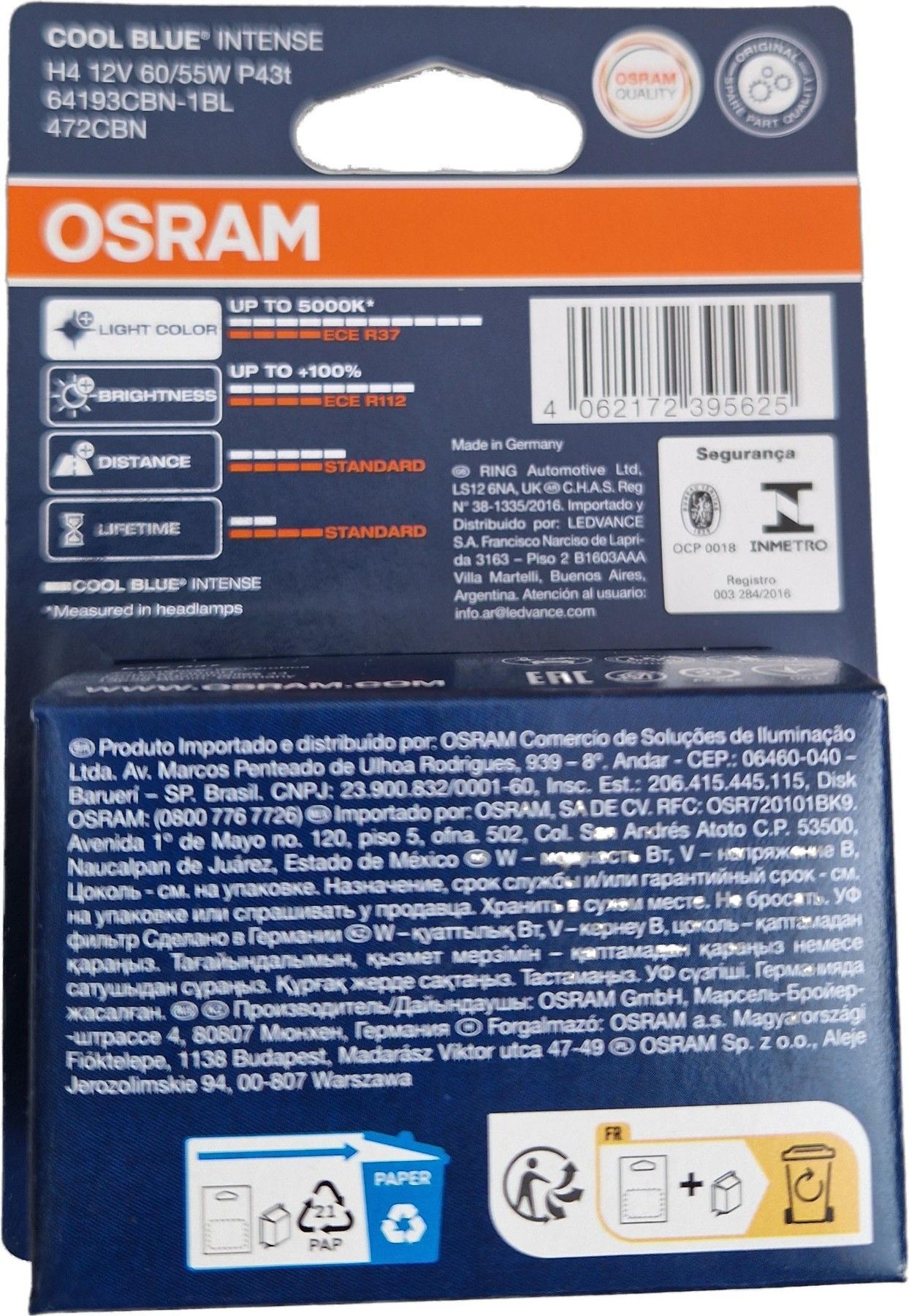 Osram H4 12V 60/55W P43t Cool Blue Intense Extra White Look 5000K + 100% 1St OSRAM