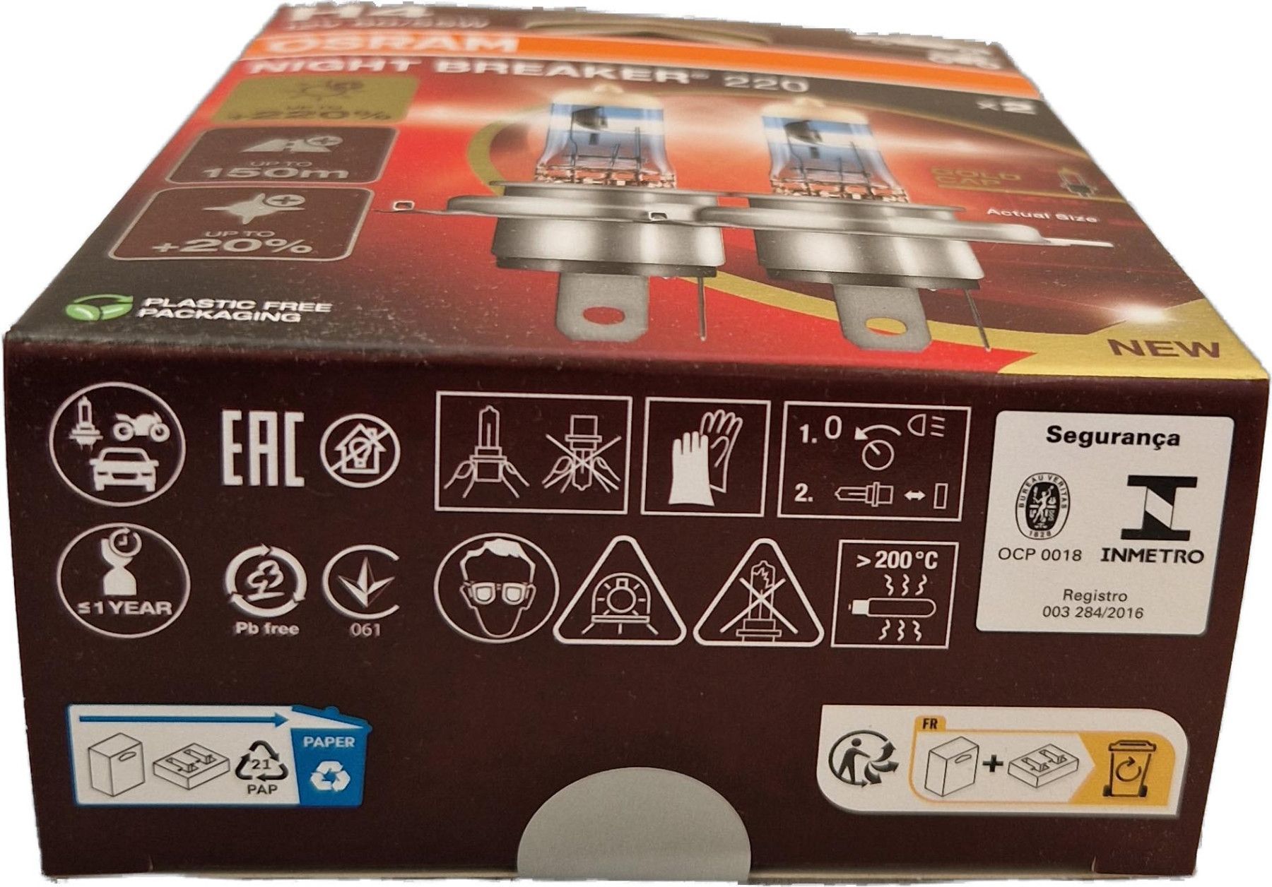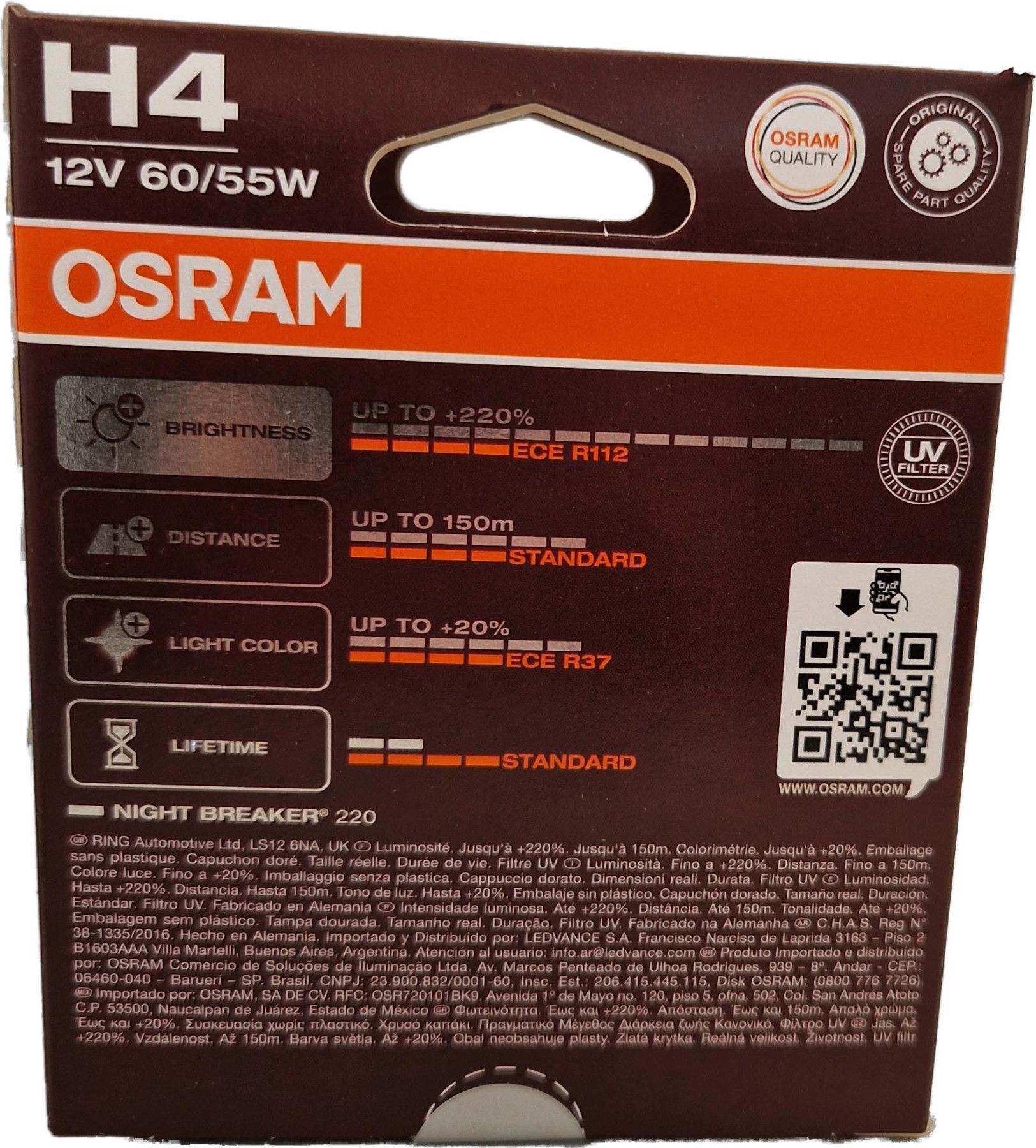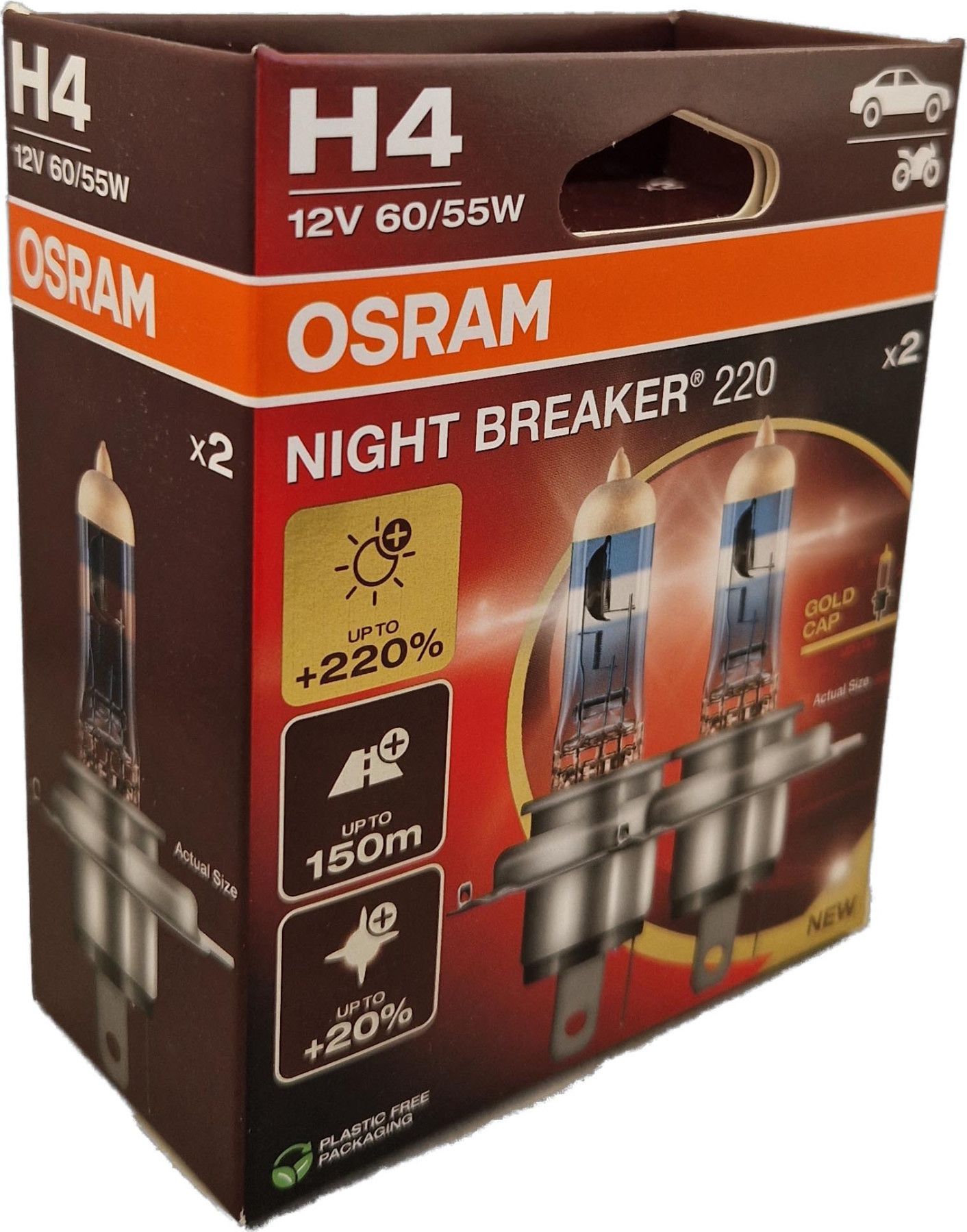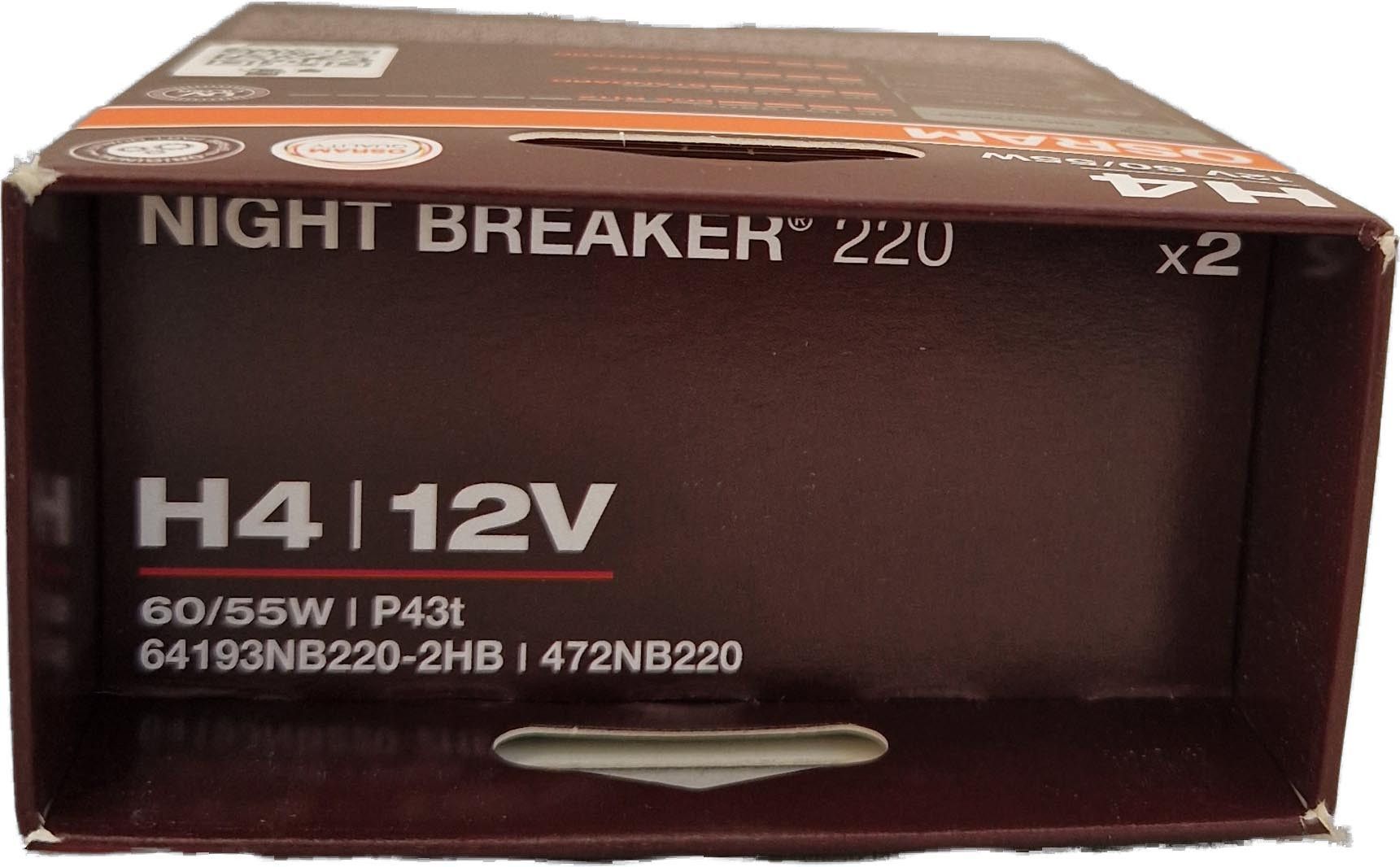 Osram H4 12V NIGHT Breaker 220 bis zu 220% mehr Licht 2St OSRAM 64193NB220-2HB
