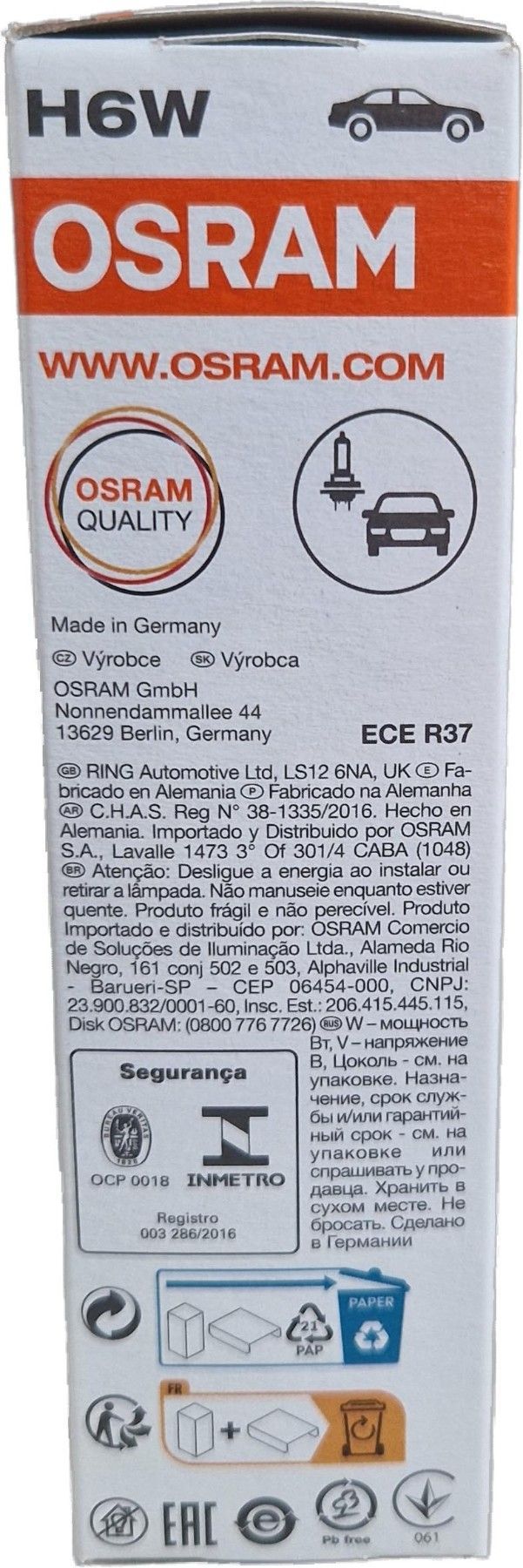 Osram H6W OSRAM Original Spare Part 10er Pack Standlicht Kennzeichenlicht 64132