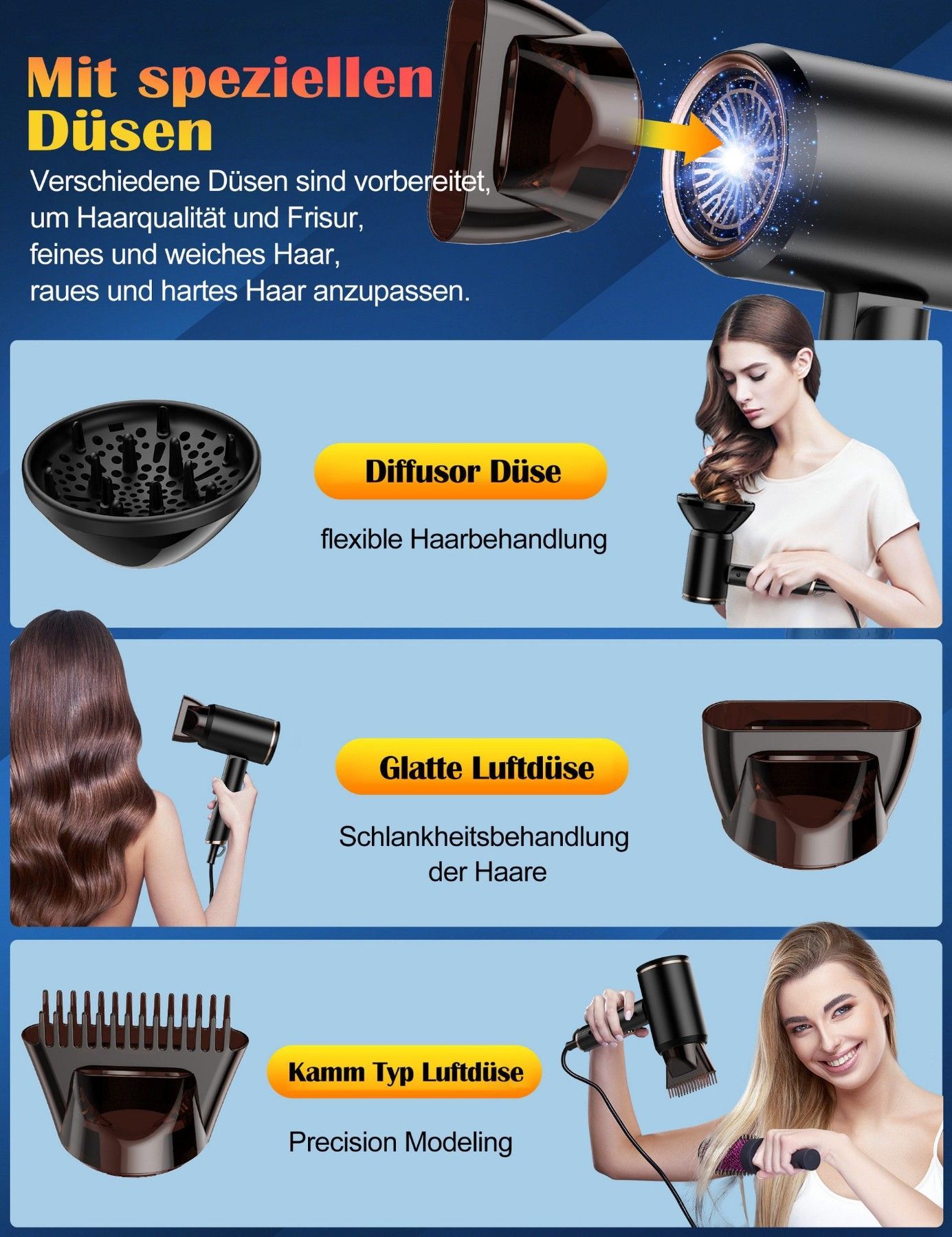 2400 W, mit 3 Stylingdüsen & 6 Temperatureinstellungen, lappbar Haartrockner