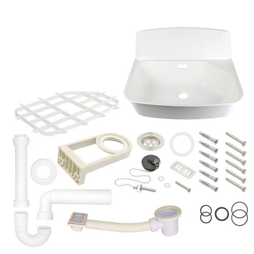 Haas Kunststoff Ausgussbecken Set Sophia Waschtrog weiß Spülbecken Abflussbecken