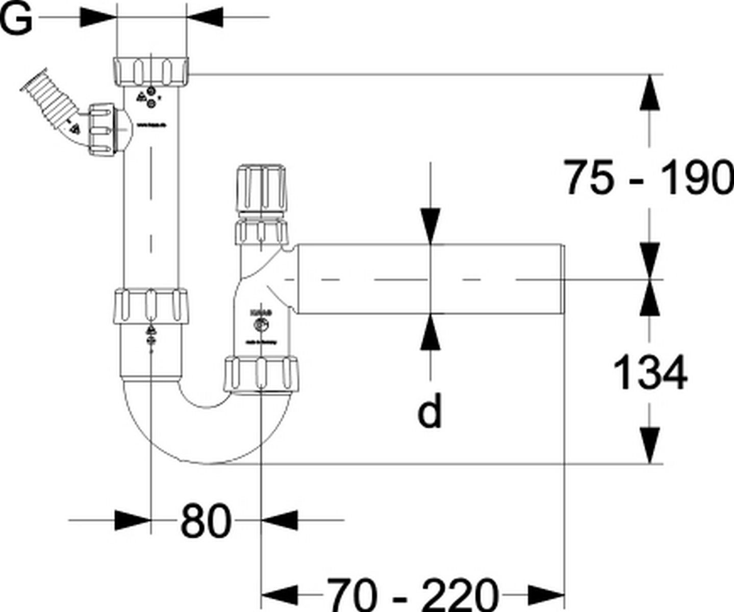 Haas PP-Röhrensiphon 1 1/2" DN50 mit einem Geräteanschluss und Rohrbelüfter