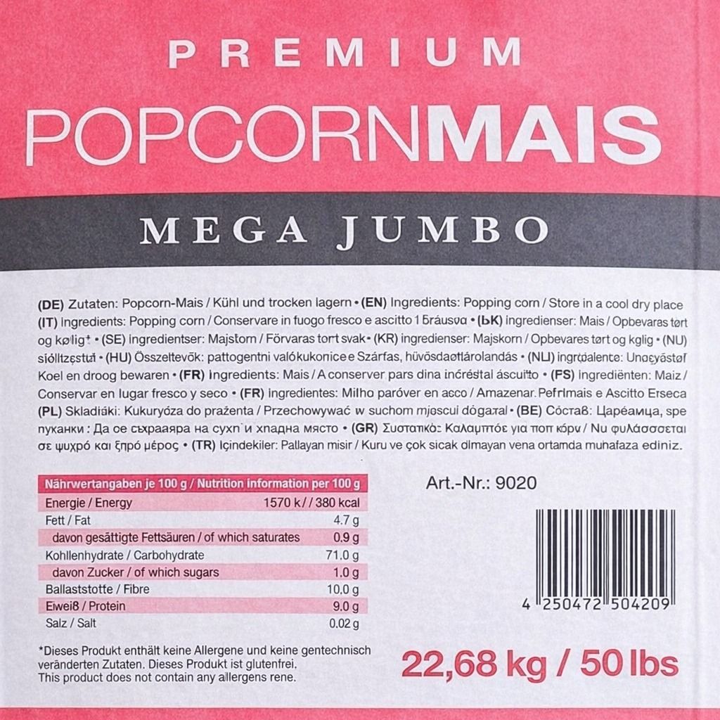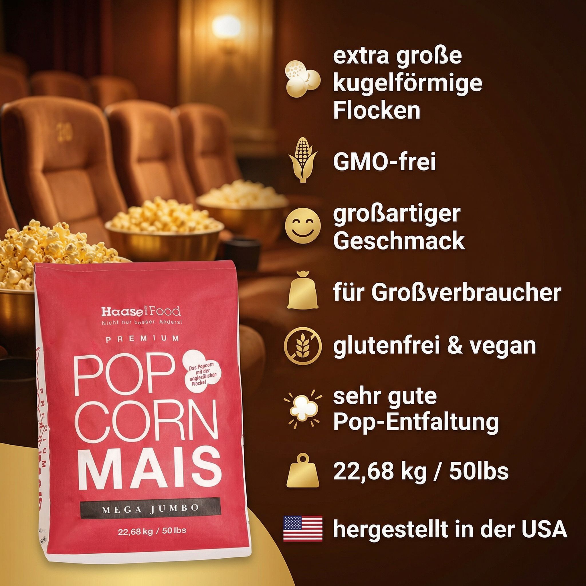 Haase Food Mega Jumbo Popcornmais 22,68kg – Extra große Körner