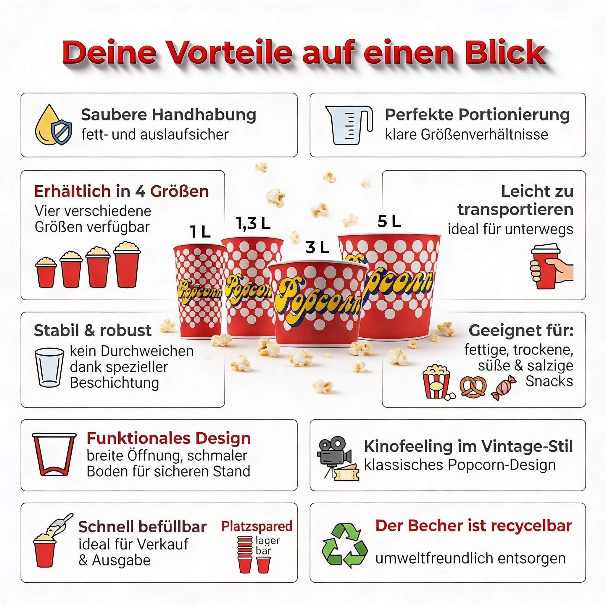 Haase Food Popcorn Bodenbecher 32oz 1 Liter – Einwegbecher für Kino & Events