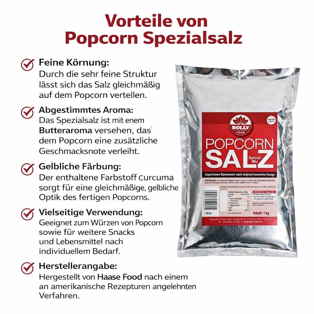 Haase Food Popcorn-Salz Spezial-Mix 1kg Beutel – Für klassisches Popcorn