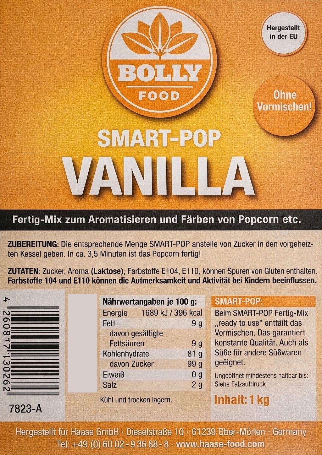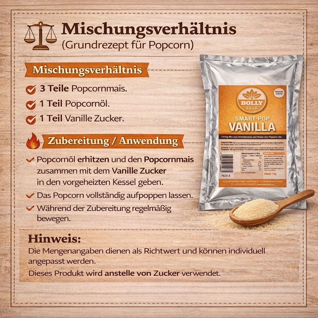 Haase Food Smart Pop Vanille Fertigmix Zucker 1kg – Für Popcorn & Süßwaren