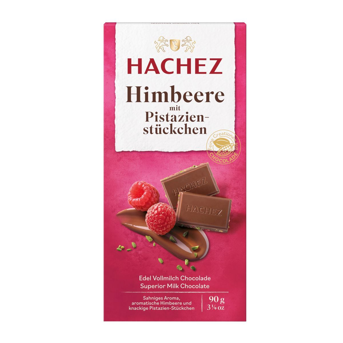 Hachez Himbeere mit Pistazienstückchen Edelvollmilchschokolade 90g