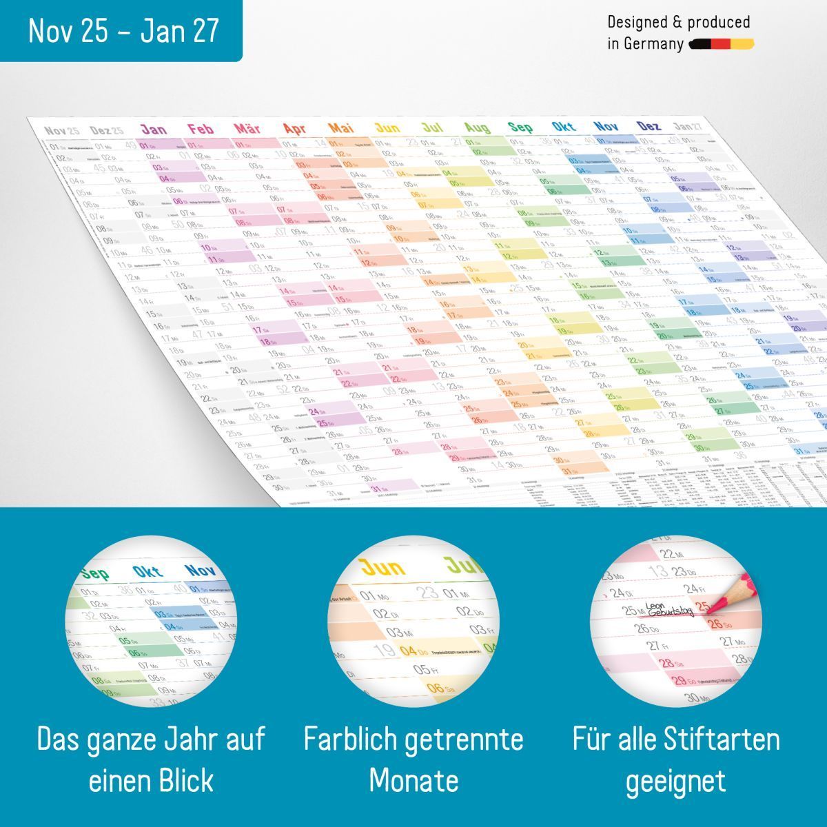 Häfft Wandkalender 2026 - A1+ / 89cm x 63cm gefalzt + A4-Übersicht / Rainbow