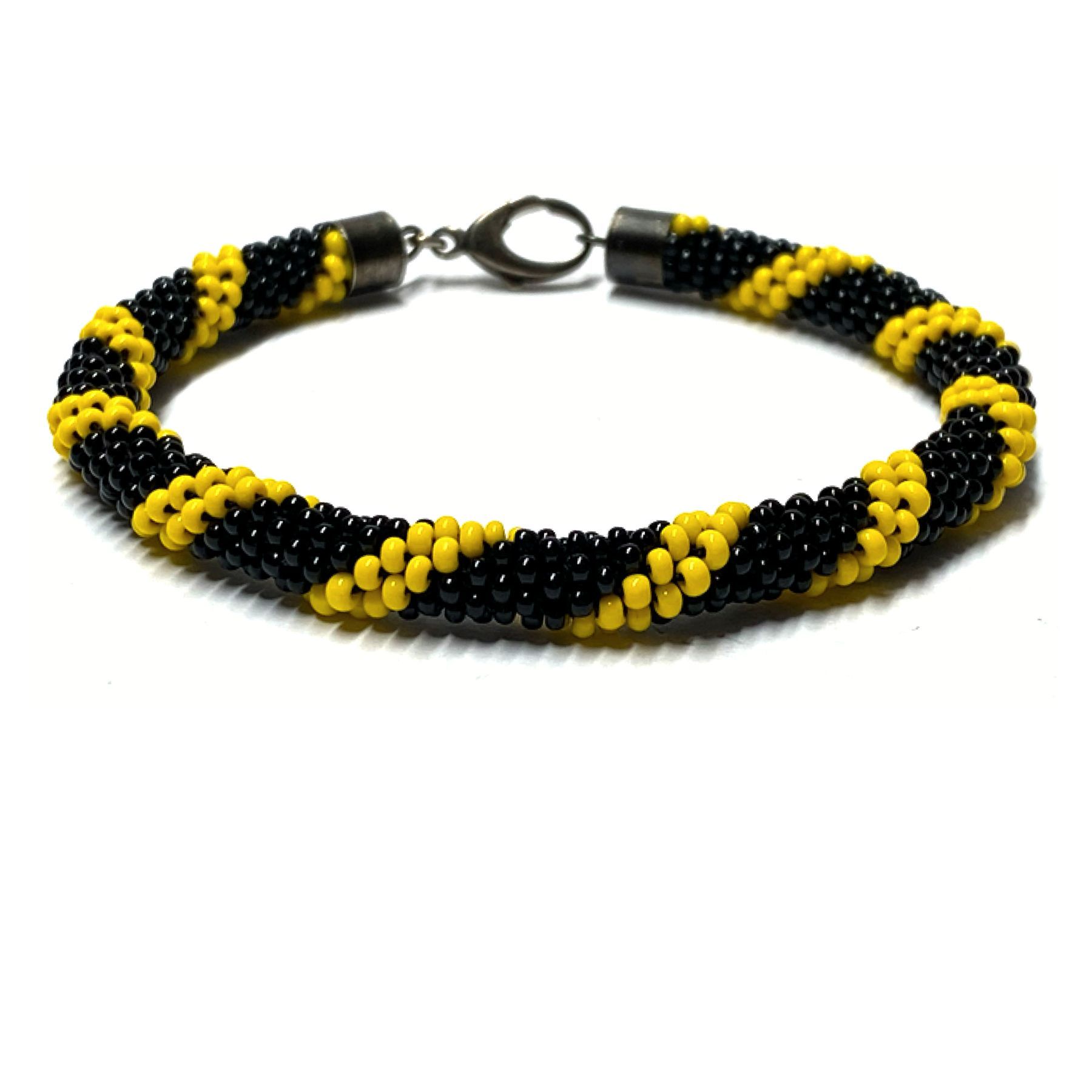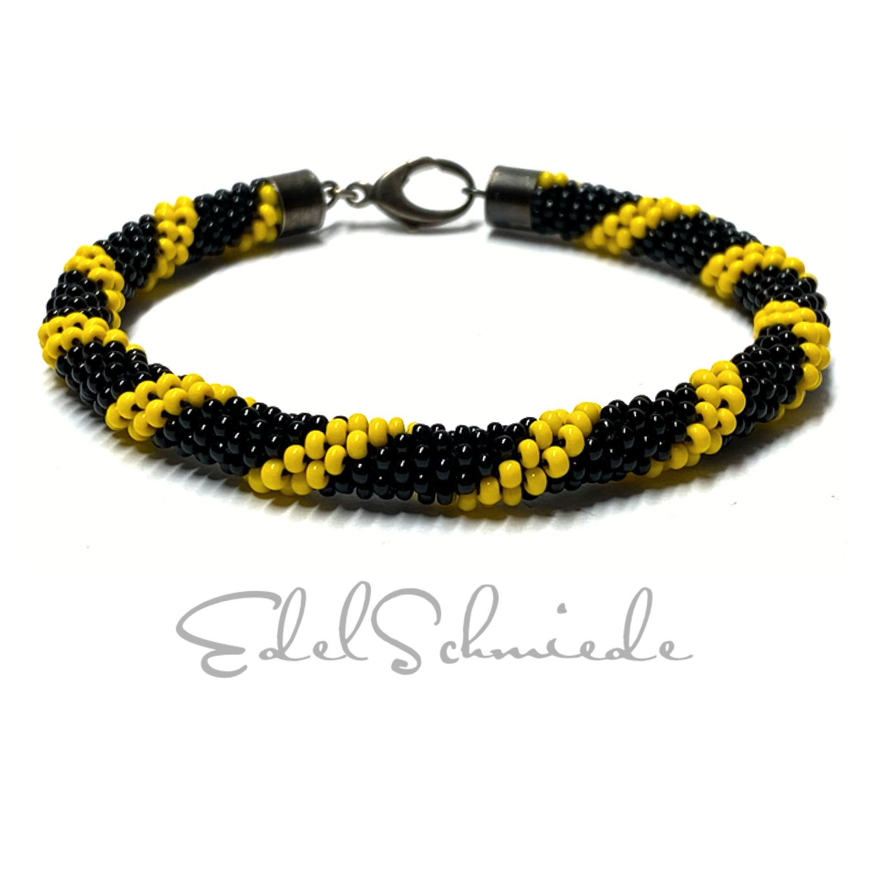 Häkelarmband Gelb schwarz Glasperlen 925/- Verschluß geschwärzt 21cm