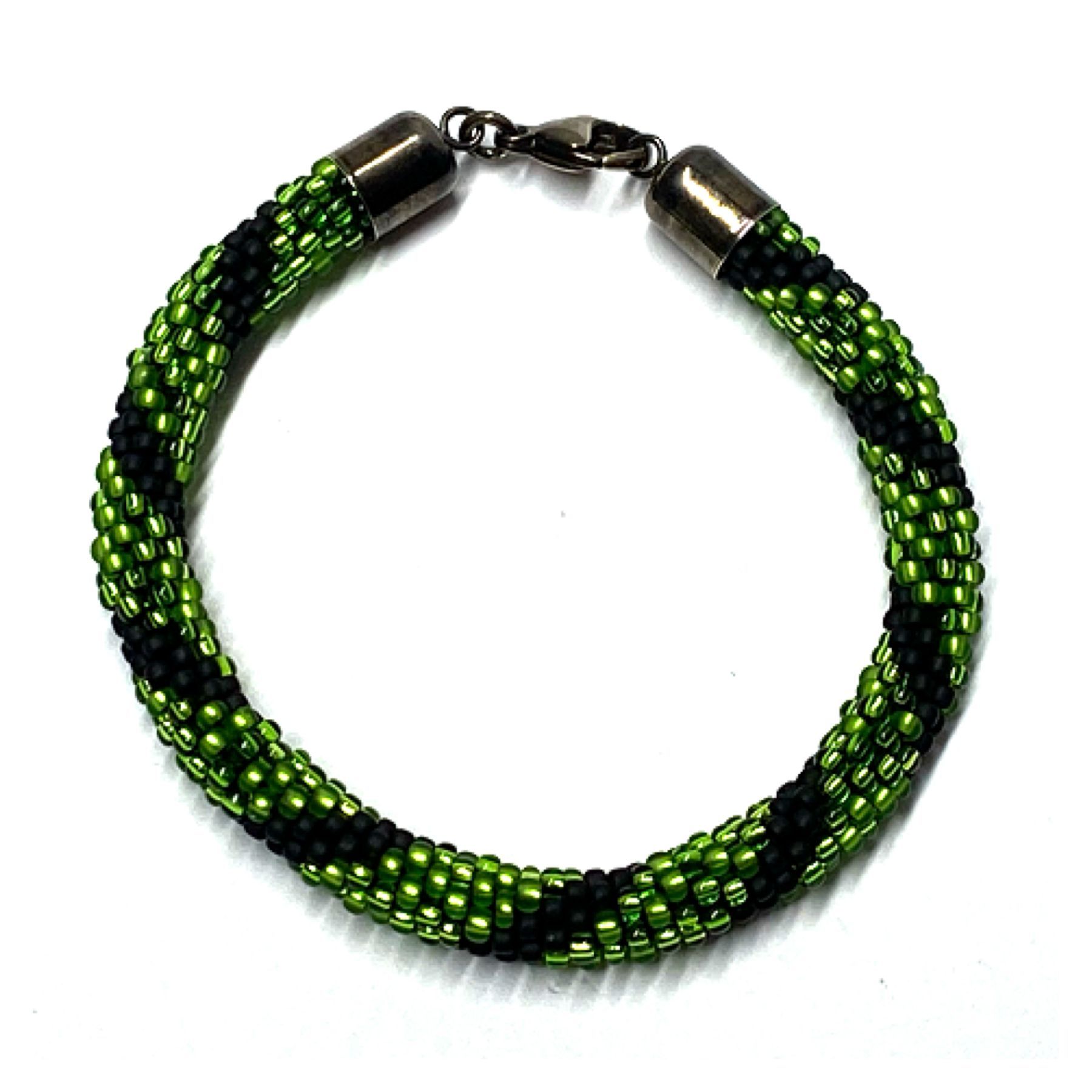 Häkelarmband Grün schwarz Glasperlen 925/- Verschluß geschwärzt 19cm