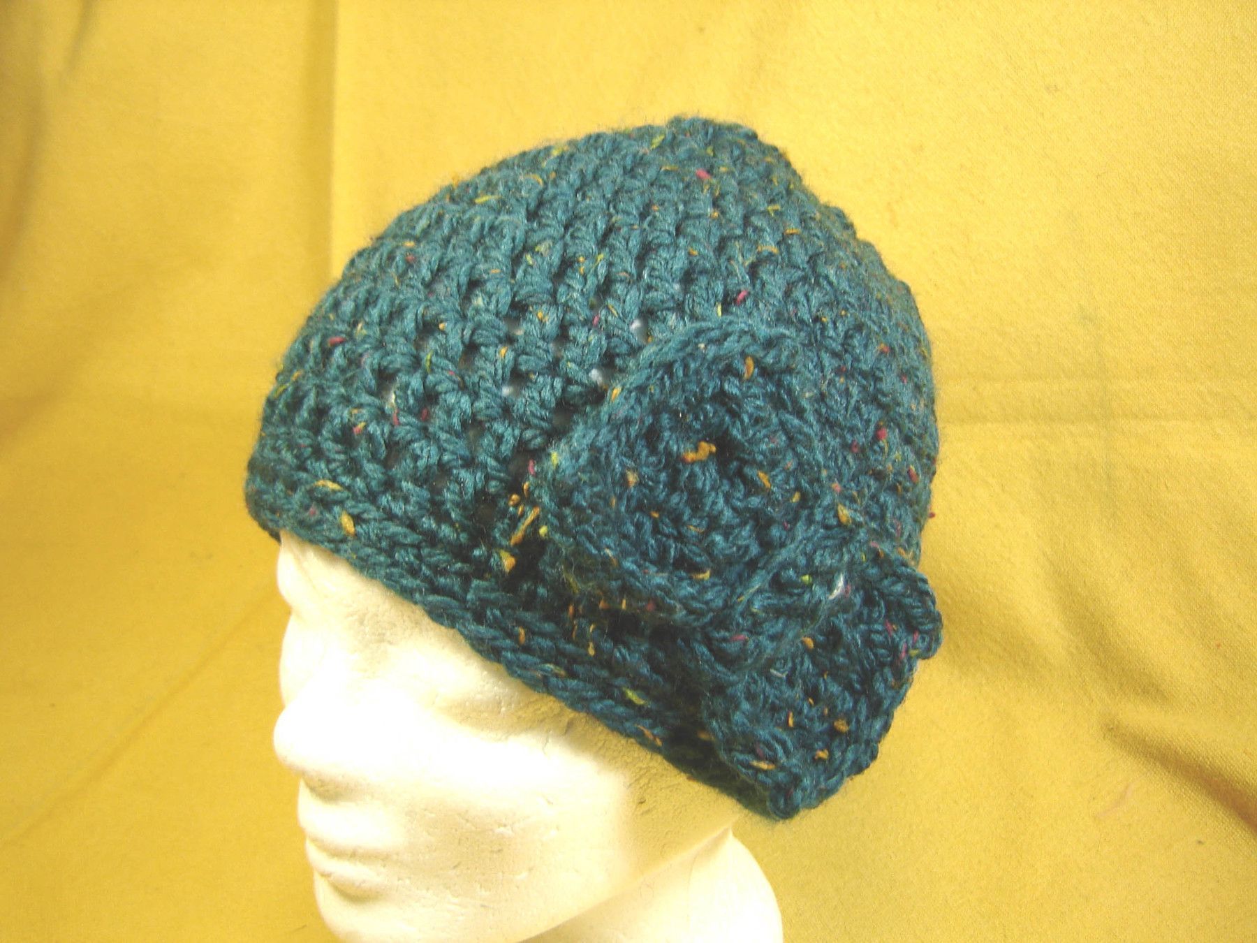 . wunderbare runde Häkelmütze mit großer Häkelschleife toller geräumiger Schnitt in Farbe dunkelgrün die Mützen werden in Deutschland handgehäkelt , deutsche Handarbeit aus wunderbarem TweedGarn gehäkelt 75 % Polyacryl 25 % Wolle die Größe passt von 56 bis 58 cm Kopfumfang , . Bitte sehen Sie sich h
