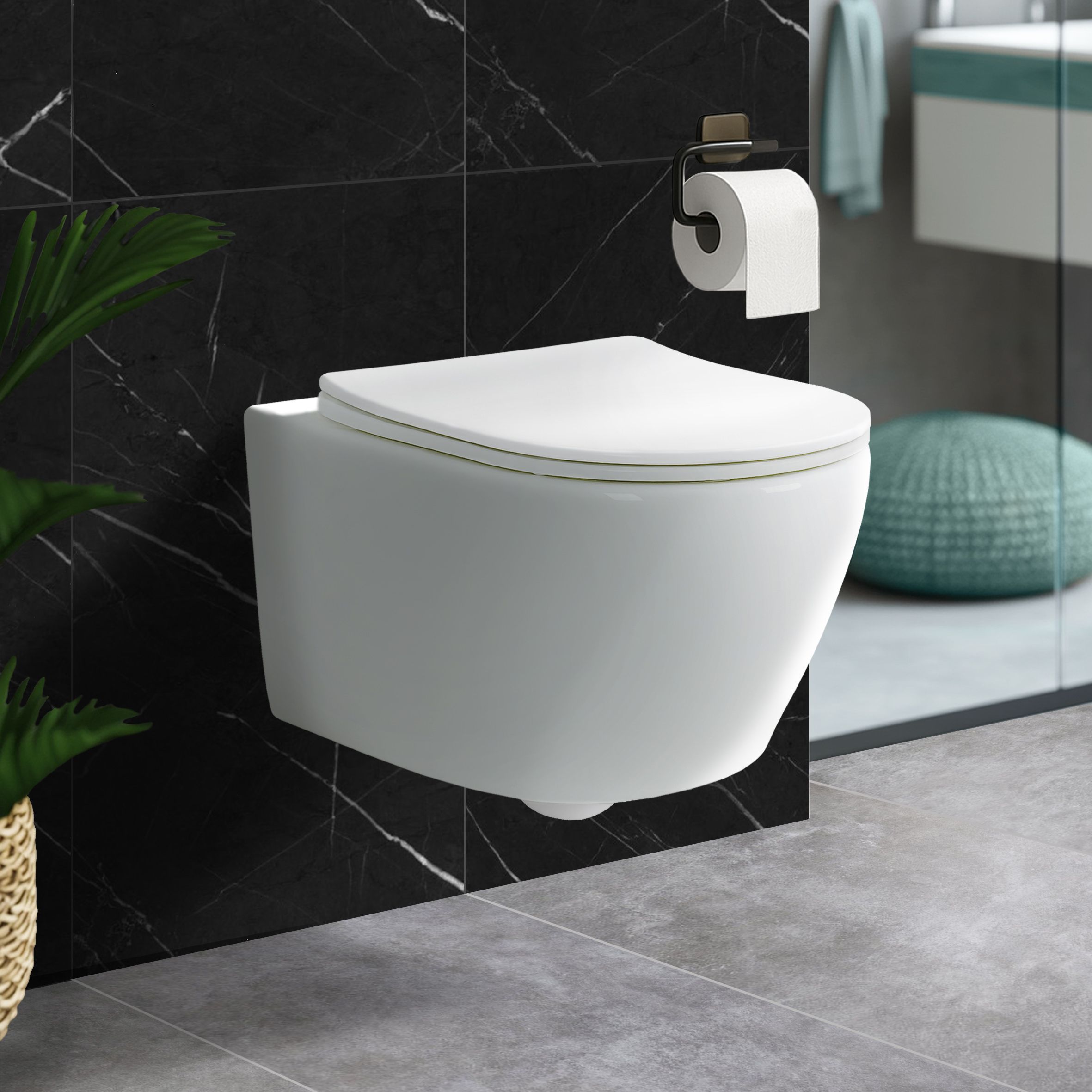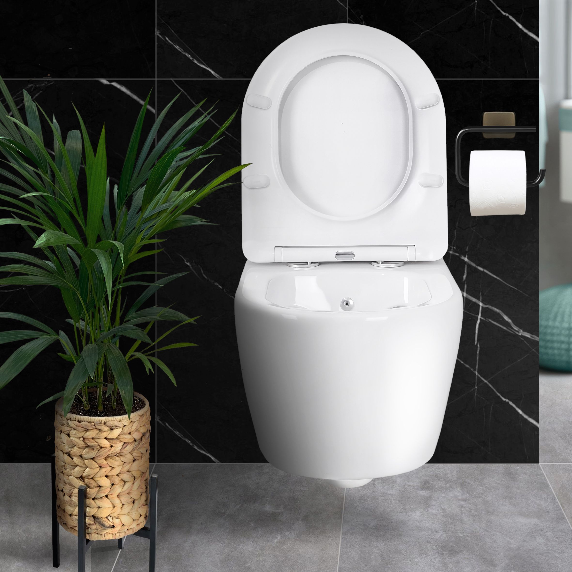Hänge Dusch WC Matt Schwarz Black Taharet WC Bidet Toilette Softclose Deckel