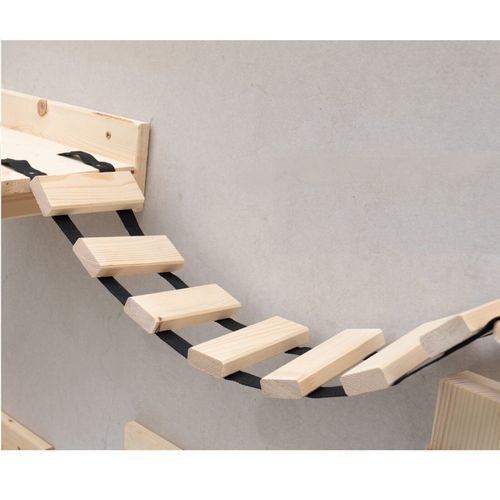 QLS Hängebrücke für Katzen Kletterwand Katzenmöbel Wandmontage 7 Stufen Holz Kiefer 9957