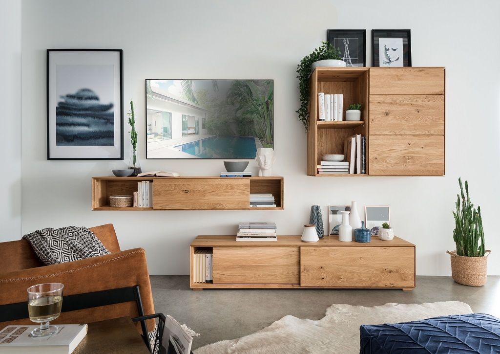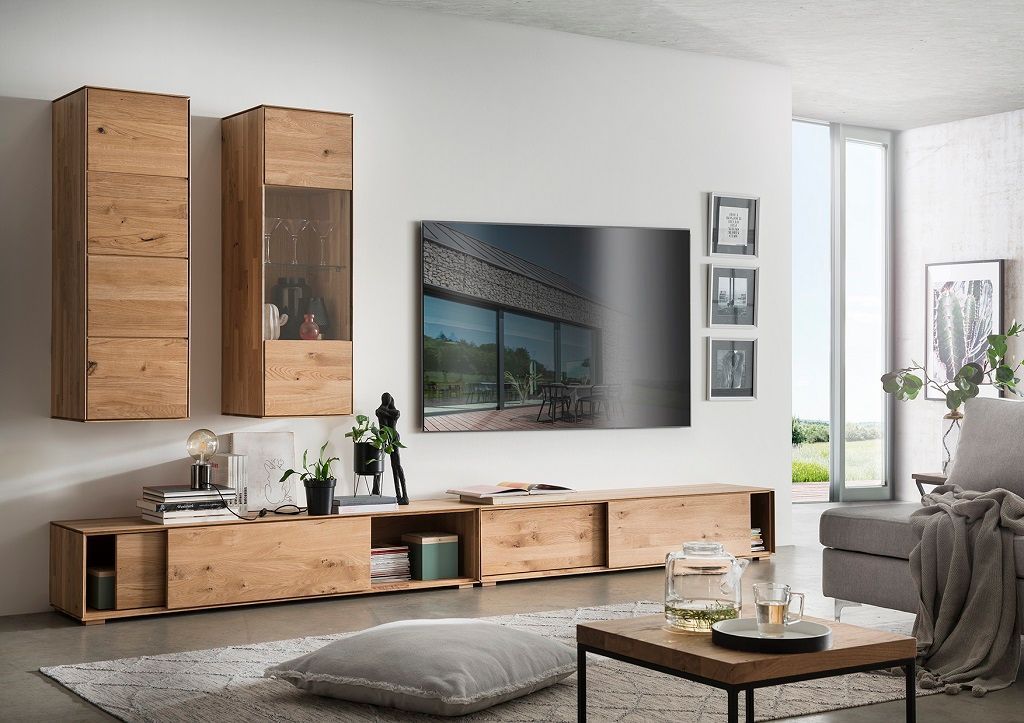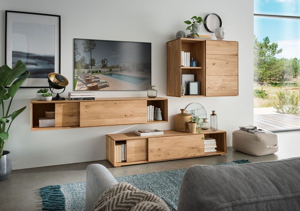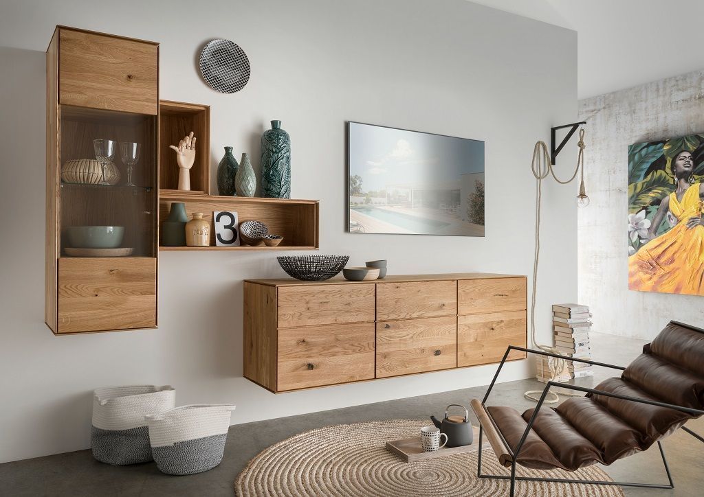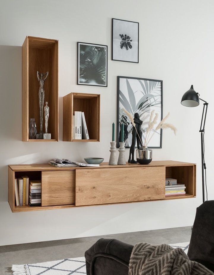 • Hängeelement 180cm 'Locarno' Wildeiche massiv & MDF creme