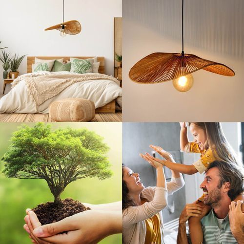 Hängelampe BOHO VERONA E27 Stil Pendellampe Schirme Bambus (Ø60cm)