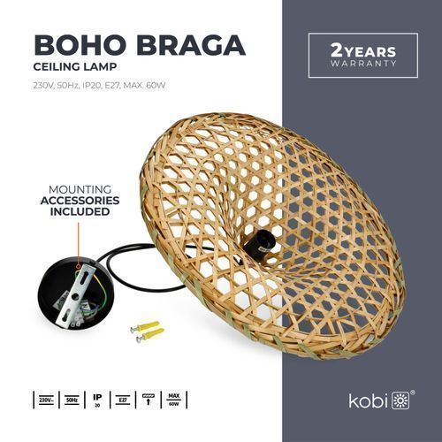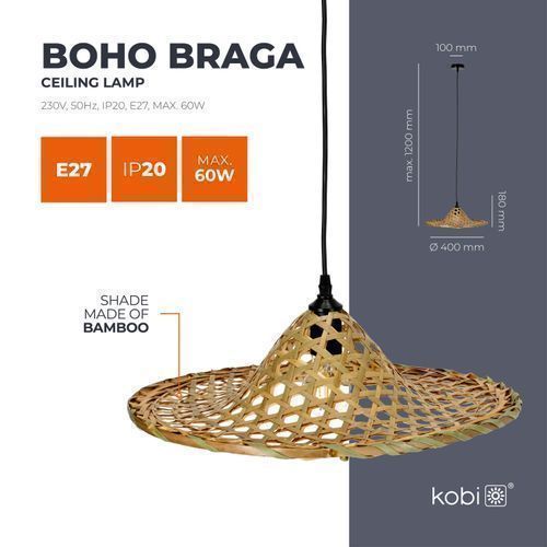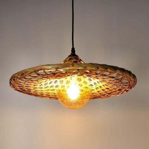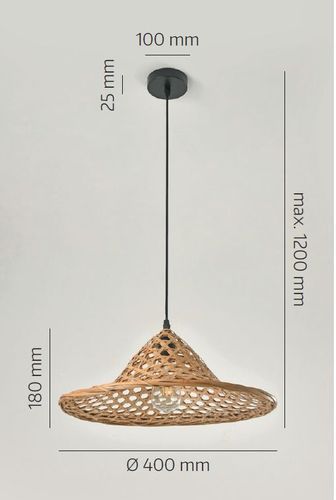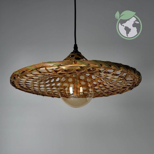 Hängelampe BRAGA Pendellampe runder Bambus-Schirm im Boho-Stil E27 Bambus (Ø40cm)