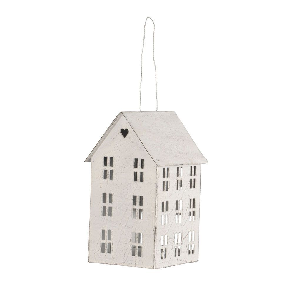 Hängelaterne HEART weiß shabby chic Laterne Haus Metallhaus zum Hängen H18cm