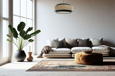 • Hängeleuchte Doblo Rattan Elegant Vintage-Creme, Graphitgrau, Senfgelb