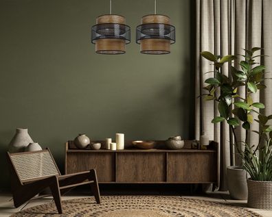 • Hängeleuchte Doblo 40 Lampenschirmhöhe 35 117 Metall Schwarz Braun, Schwarz